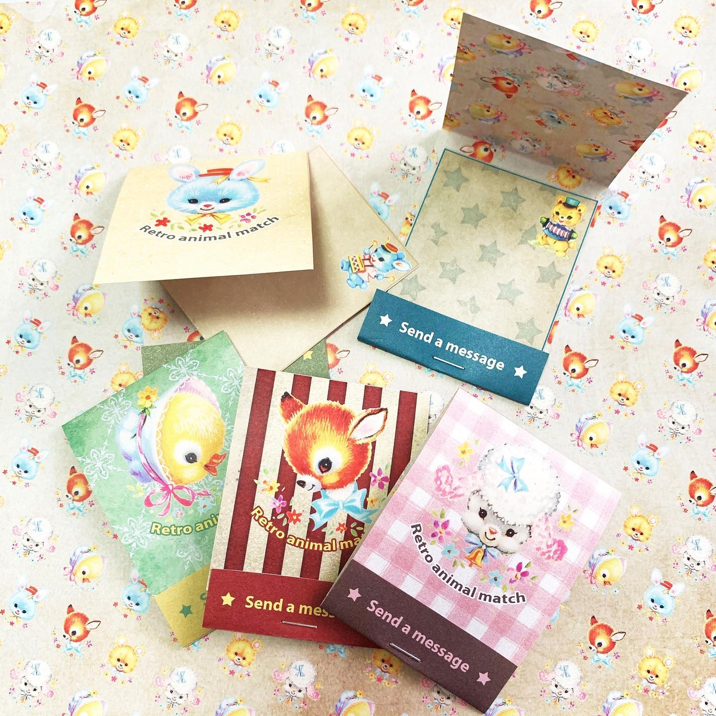 ペーパー【アニマルマッチラベル】 仕様 カット→折り込み→下部をホッチキスでとめる→メモ部分を挟むとマッチラベルのメモの出来上がりのペーパーです(カット無しでお届けします) 裏面は細かなレトロアニマル柄になってるのでメモを開いた時も可愛さ満点です。 A4両面カラー:上質紙90kg 10枚セット ※商用利用可 在庫状態 : 売り切れ ¥400 只今お取扱い出来ません