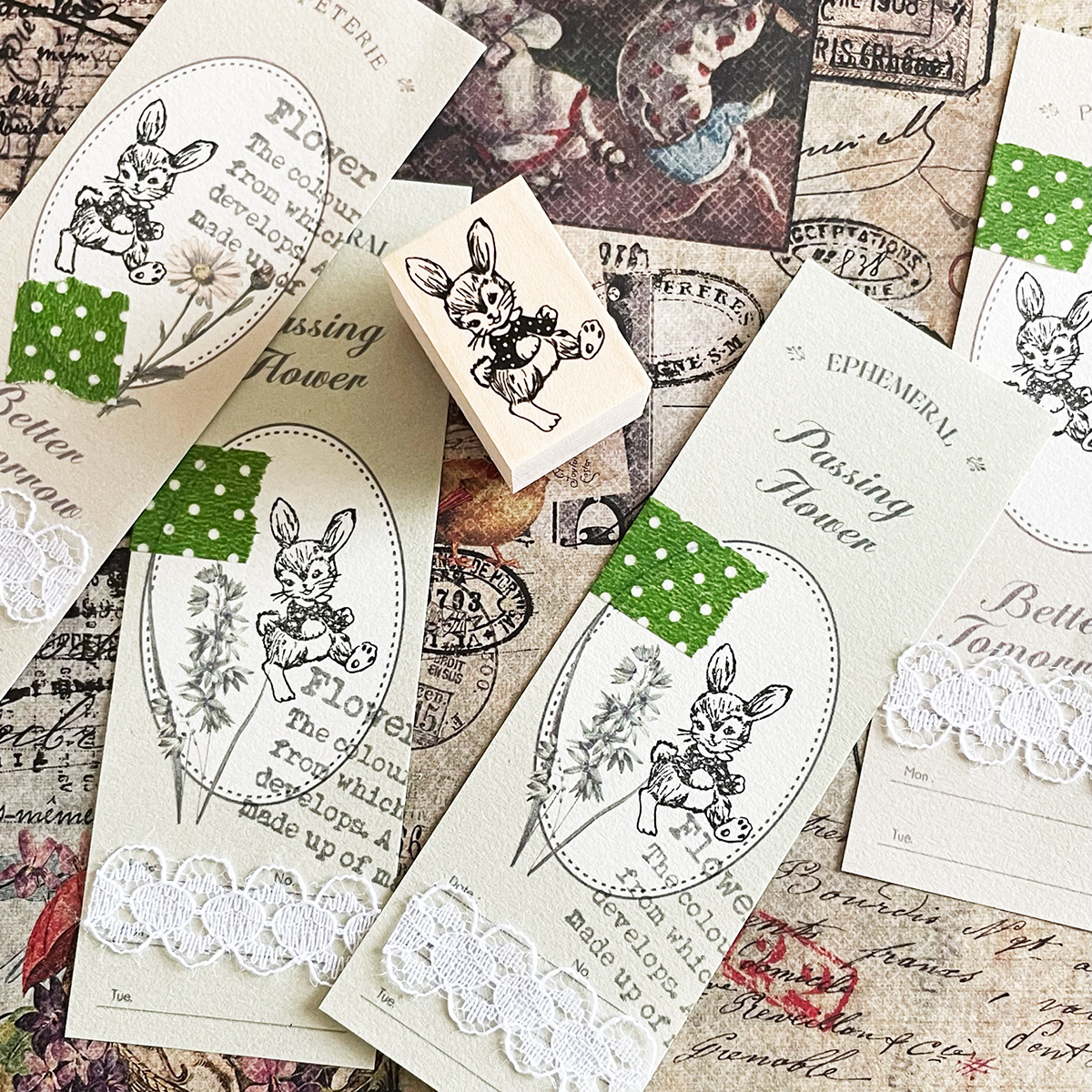 スタンプ【レトロうさぎ】 仕様 メープル材 高さ2.4cm 本体の大きさ3×2cm ※図案は本体よりも小さめです。 ⚠️商用利用不可 (金銭の発生する物へは一切利用しないで下さい) ⚠️スタンプ同士の同梱は可。他商品との同梱不可です 在庫状態 : 売り切れ ¥700 只今お取扱い出来ません
