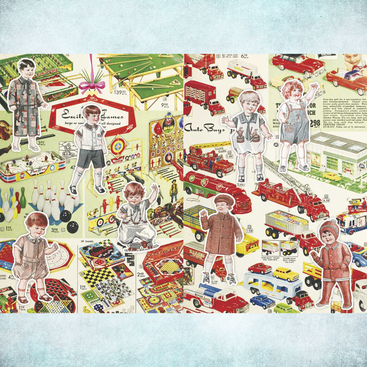 ペーパー【中薄紙:おもちゃ男の子】 仕様 おもちゃカタログデザインの男の子バージョン。 両面印刷で片側は水色のドットになります。少し白インクで汚したような仕上がりにしています。 子供素材をカットしてコラージュにも使いやすいサイズ感です。 中薄紙の上質紙70kgで仕上げております。 A4両面カラー:上質紙70kg 10枚セット ※商用利用不可 在庫状態 : 売り切れ ¥400 只今お取扱い出来ません