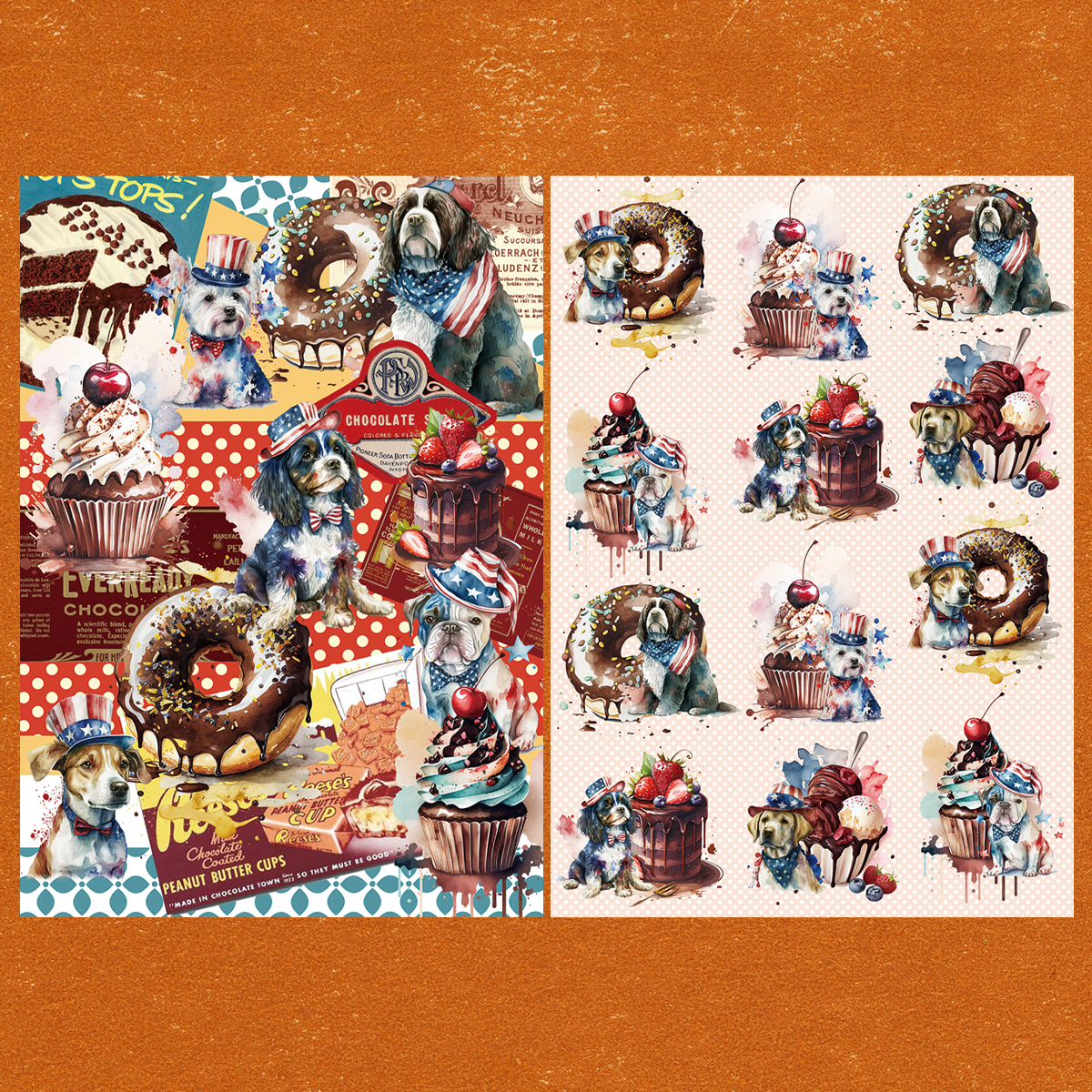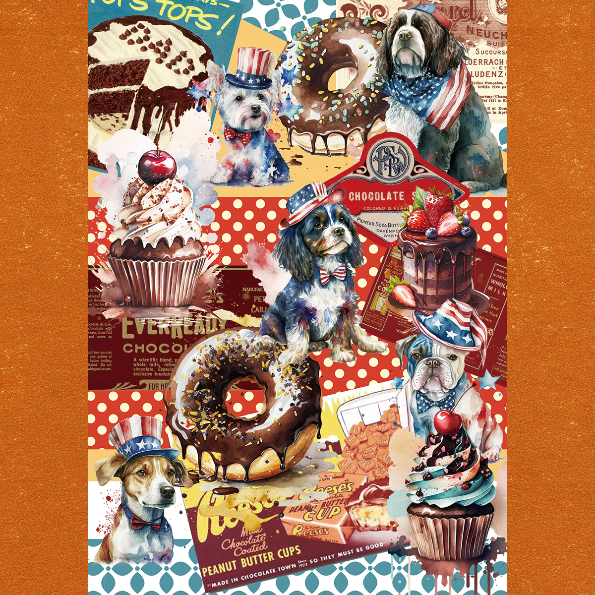 ペーパー【A5犬とお菓子】 仕様 アメリカンポップなおいしそうなデザインになります。 裏面はコラージュシートのように使えるのでカットしてご利用いただいても〇 A5サイズなのでジャーナルなどにも使いやすいです。 A5両面カラー 上質紙90kg 10枚セット ※商用利用可 在庫状態 : 売り切れ ¥350 只今お取扱い出来ません