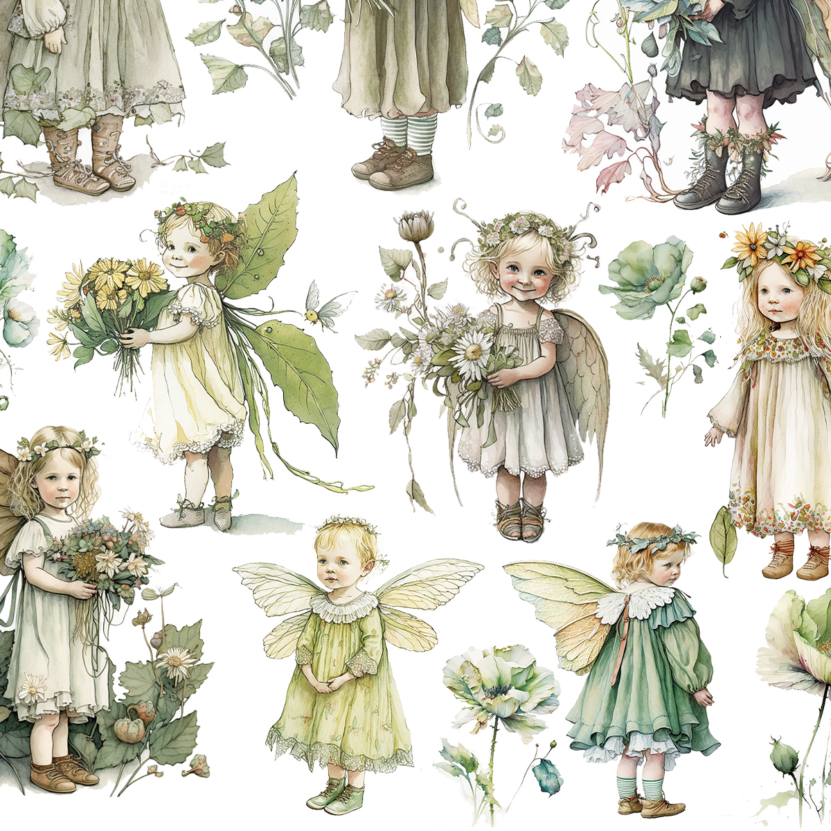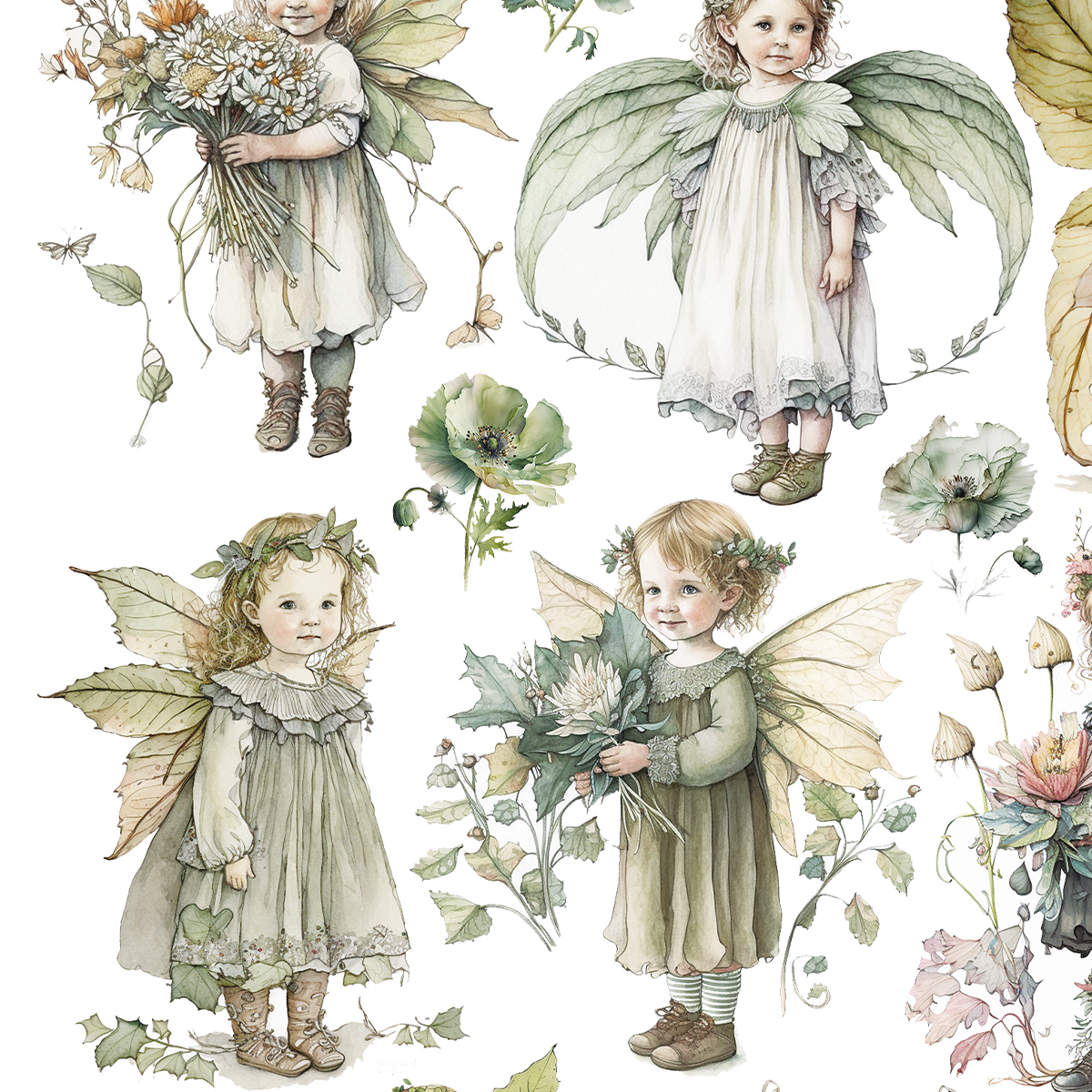 ナチュラルな色合いの植物のフェアリー素材のコラージュシートです。