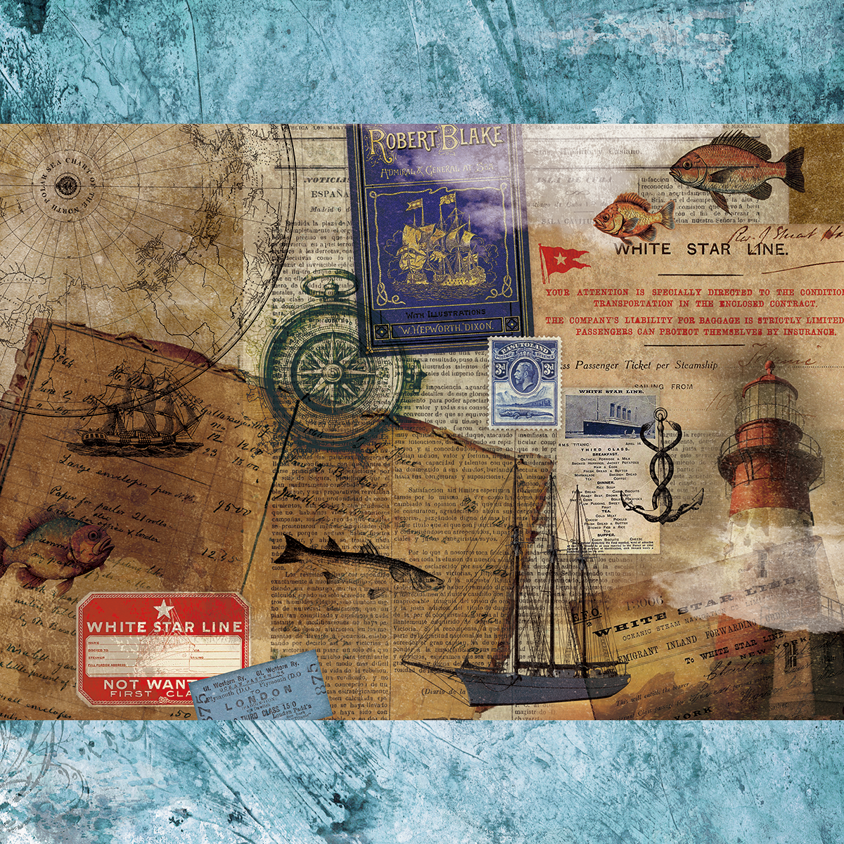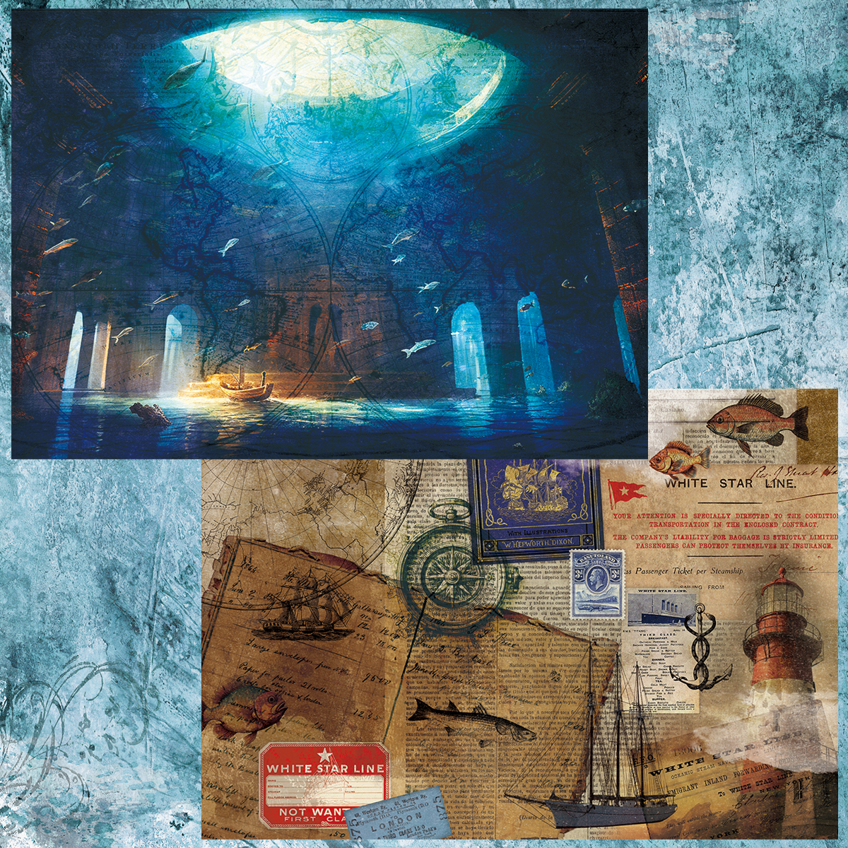 ペーパー【2023海】 仕様 毎年作っている海のデザインになります。 海底にある神殿とそれを探す航海というイメージで作りました。 ビンテージでデザインにご利用ください。 A4両面カラー:上質紙90kg 10枚セット ※商用利用可 在庫状態 : 売り切れ ¥400 只今お取扱い出来ません