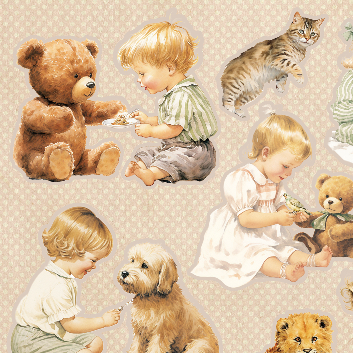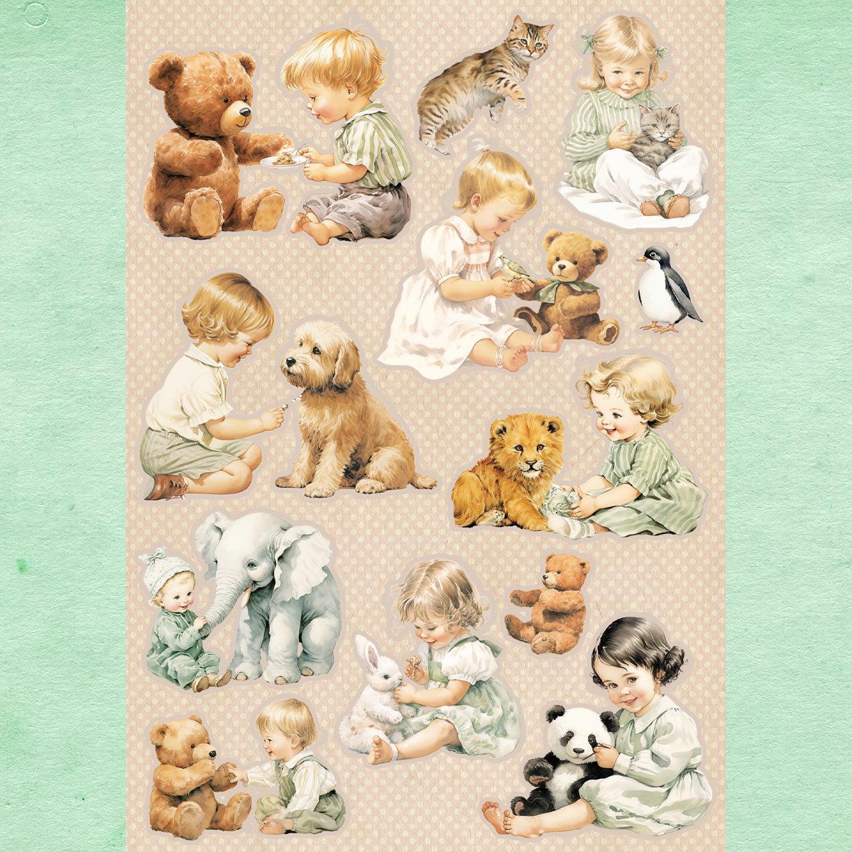ペーパー【A5子供ぬいぐるみコラージュシート】 仕様 可愛い子供と動物のぬいぐるみたちのコラージュシートです。 カットしてご利用ください。 素材は当店オリジナルです。 使いやすいA5シートにしました。 A5片面カラー:上質紙70kg 10枚セット ※商用利用可能 ただしカットしたものをそのまま販売は御遠慮ください。 在庫状態 : 売り切れ ¥280 只今お取扱い出来ません