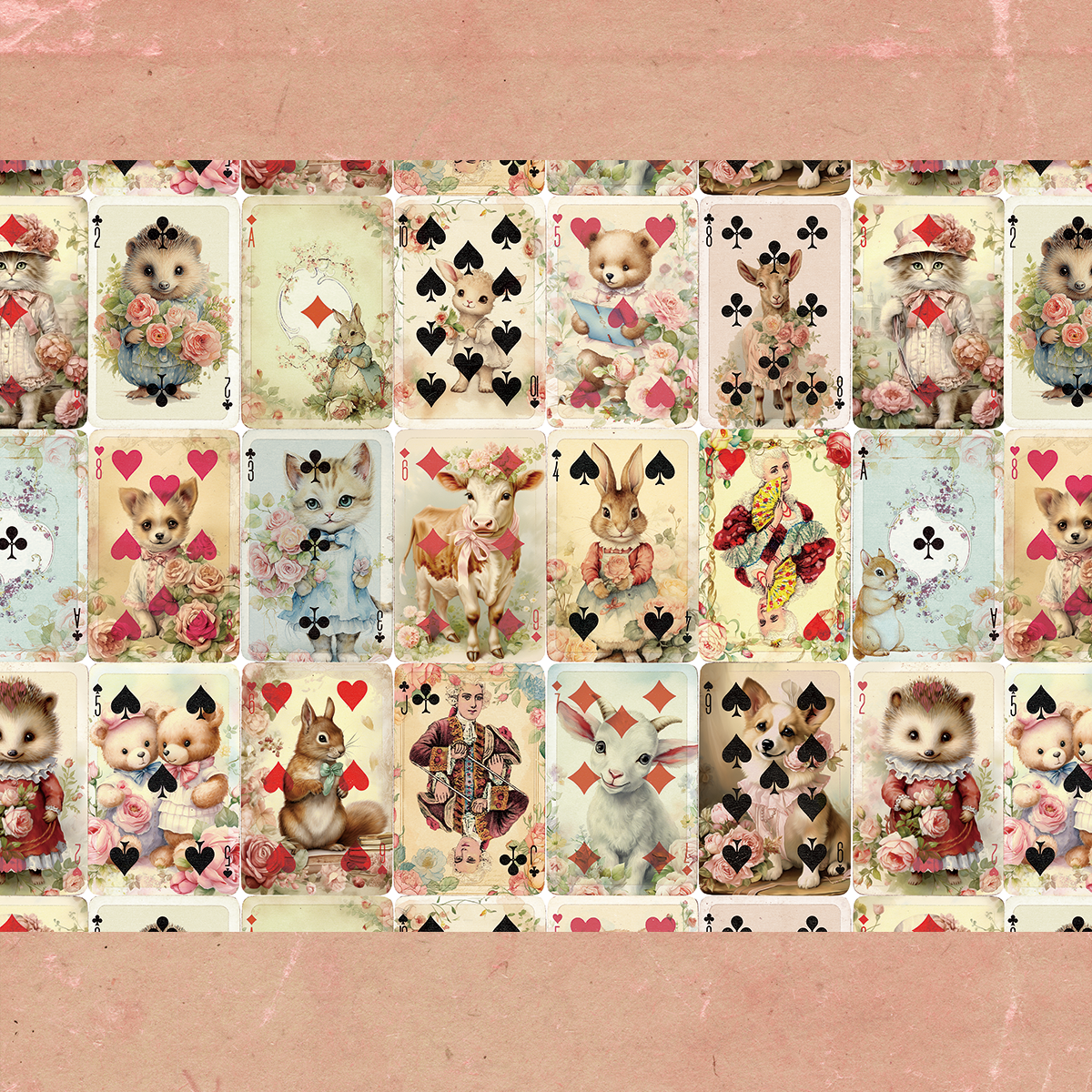 ペーパー【厚紙180:ヴィクトリアン動物トランプ】 仕様 ヴィクトリアン調の動物たちのトランプ柄です。 動物たちはオリジナルデザインになります。 かなり厚めの180kgなので折り目をつけてポケットを付けるだけで簡易ファイルにもなります。 A4両面カラー:上質紙180kg 10枚セット ※商用利用可 在庫状態 : 売り切れ ¥550 只今お取扱い出来ません