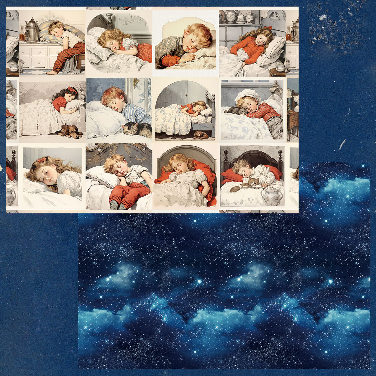 ペーパー【睡眠子供】 仕様 可愛い子供たちの寝顔を夜空のデザインです。 子供たちのタッチは児童書のような仕上がりなのでビンテージな雰囲気にも似合います。 カットしてコラージュなどに使用もできます。 当店オリジナルの素材を使用しております。 A4両面カラー:上質紙90kg 10枚セット ※商用利用可 在庫状態 : 売り切れ ¥400 只今お取扱い出来ません