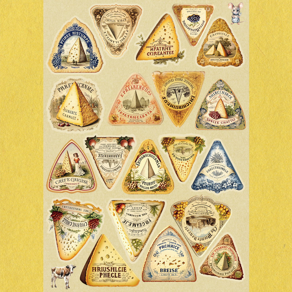 ペーパー【A5ロール紙:三角チーズラベルコラージュシート】 仕様 三角のチーズラベルのデザインです。 ザラザラ面に印字してあるのでビンテージな雰囲気に仕上がっています。 カットしてご利用ください。 素材は当店オリジナルです。 使いやすいA5シートにしました。 A5片面カラー:純白ロール43kg 10枚セット ※商用利用可能 ただしカットしたものをそのまま販売は御遠慮ください。 在庫状態 : 売り切れ ¥300 只今お取扱い出来ません