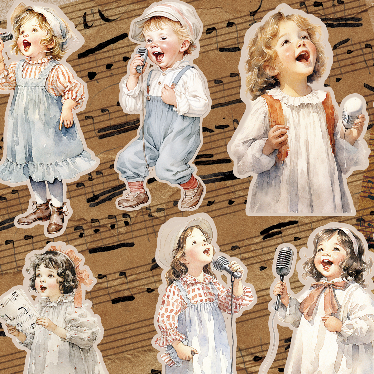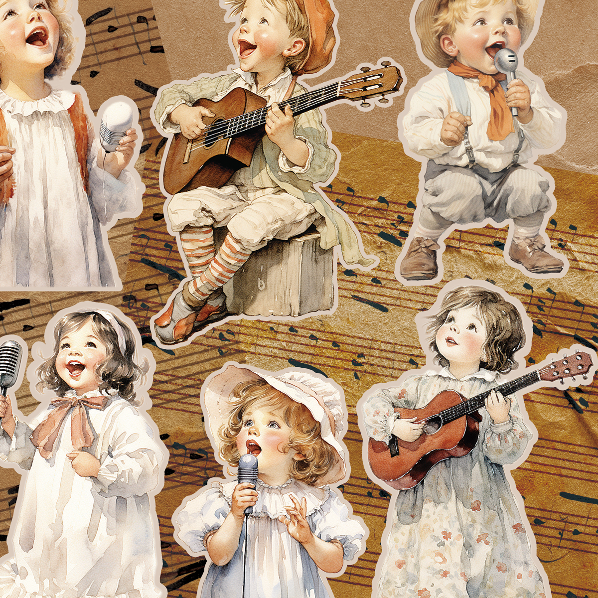 ペーパー【厚紙110:歌う子供コラージュシート】 仕様 音楽を奏でる子供たちのコラージュシートです。 カットラインはありますが細かな雰囲気なのでA4サイズにしてさらにカットをしやすくしました。 素材が大きめになるので紙質も厚めにしています。 カットしてご利用ください。 素材は当店オリジナルです。 A4片面カラー印刷:上質紙110kg 10枚セット ※商用利用可能 ただしカットしたものをそのまま販売は御遠慮ください。 在庫状態 : 売り切れ ¥380 只今お取扱い出来ません