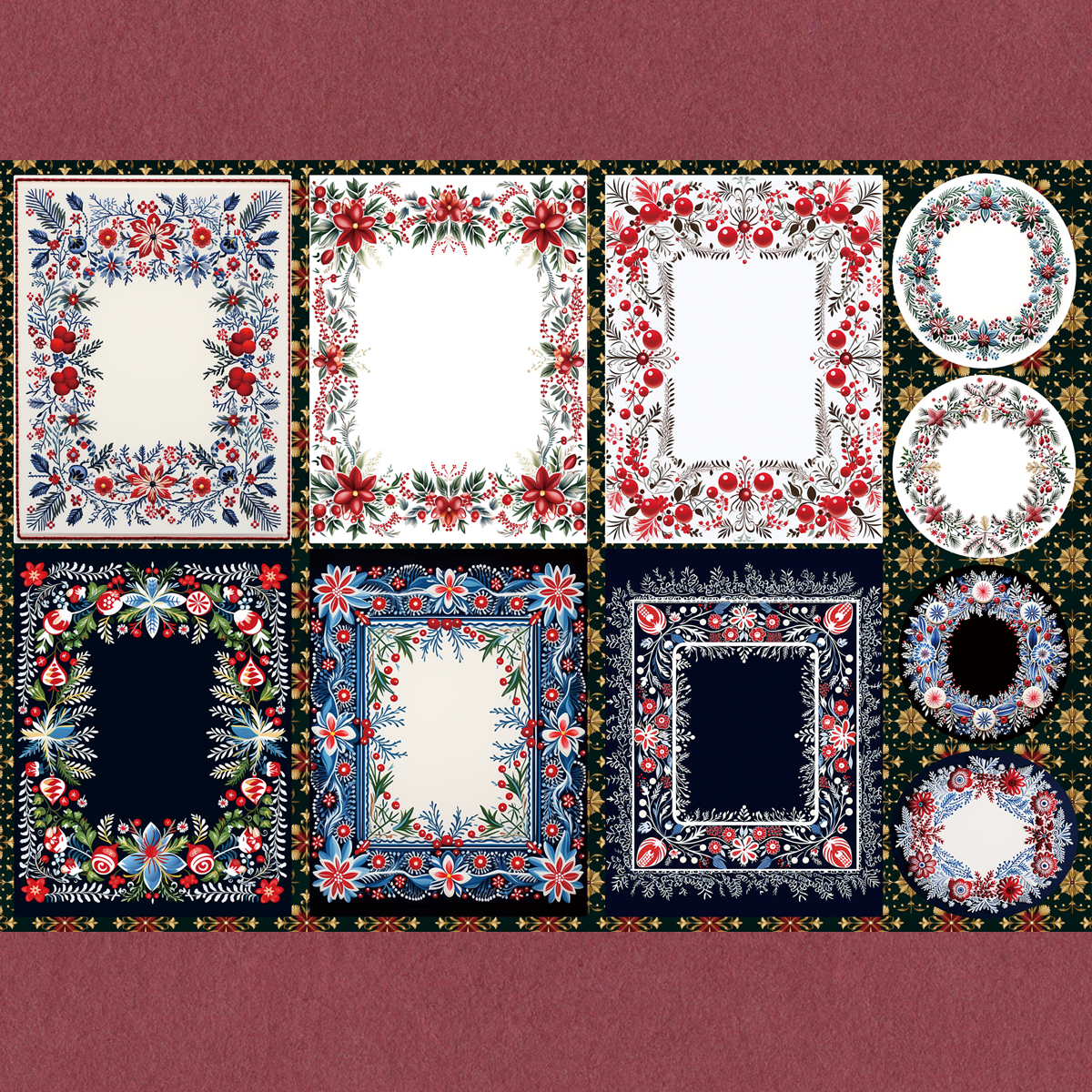 ペーパー【厚紙135kg:クリスマス刺繍枠】 仕様 厚紙で仕上げた額縁デザインです。 クリスマスの刺繍デザインで仕上げました。 カットしてコラージュにご利用ください。 当店オリジナル素材です。 A4片面カラー:上質135kg 10枚セット ※商用利用可 在庫状態 : 売り切れ ¥400 只今お取扱い出来ません