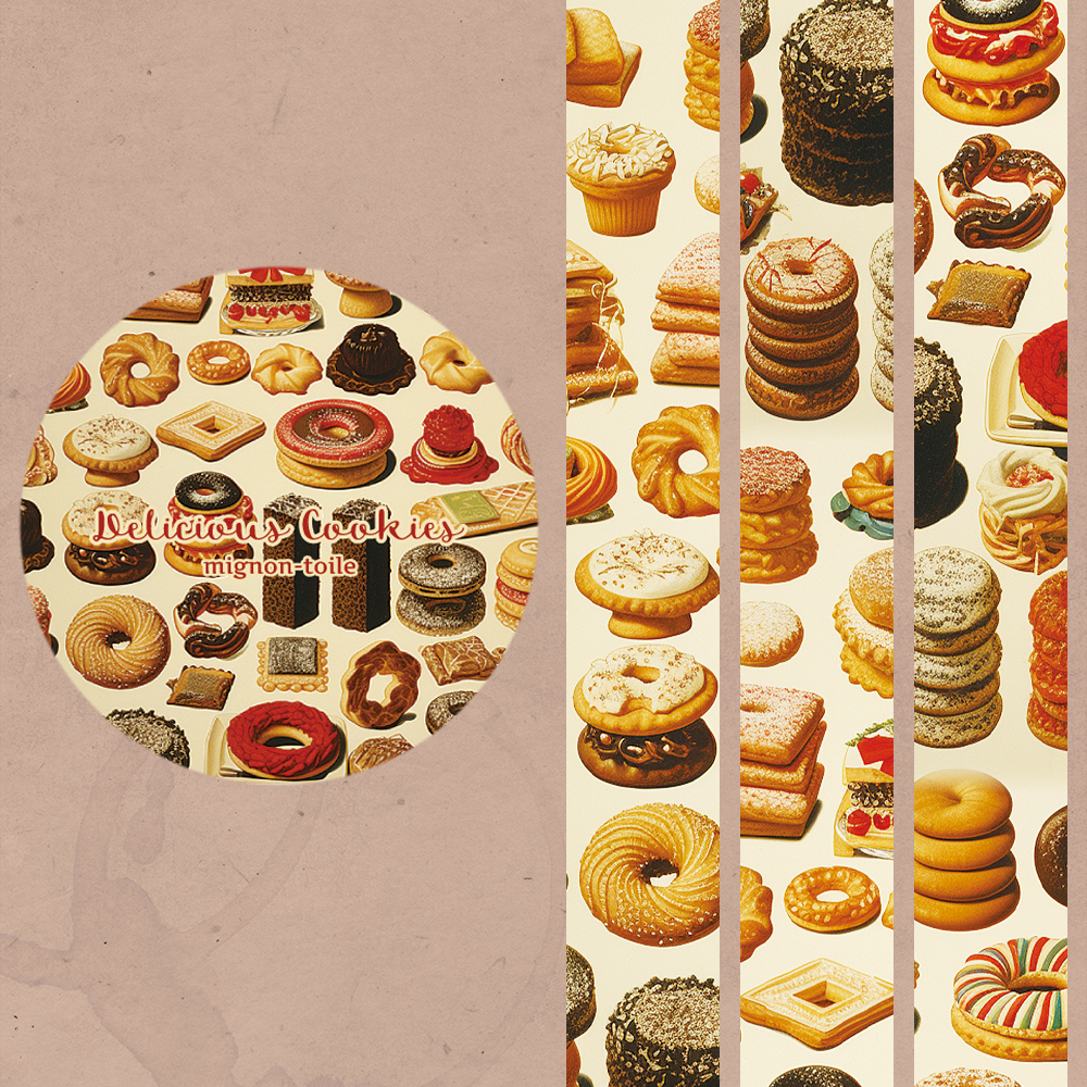 おいしそうなビンテージ風のクッキーとドーナツのデザインです。