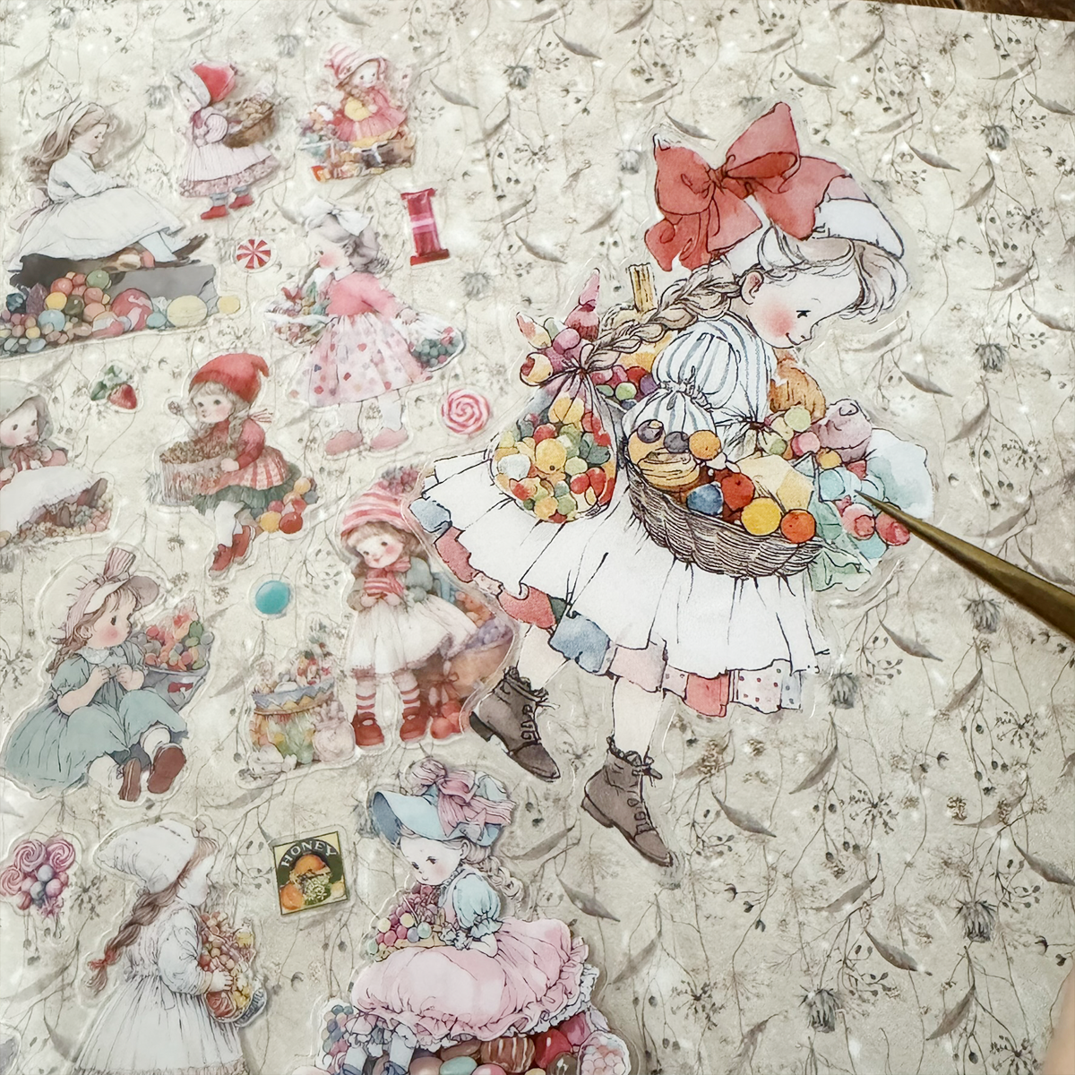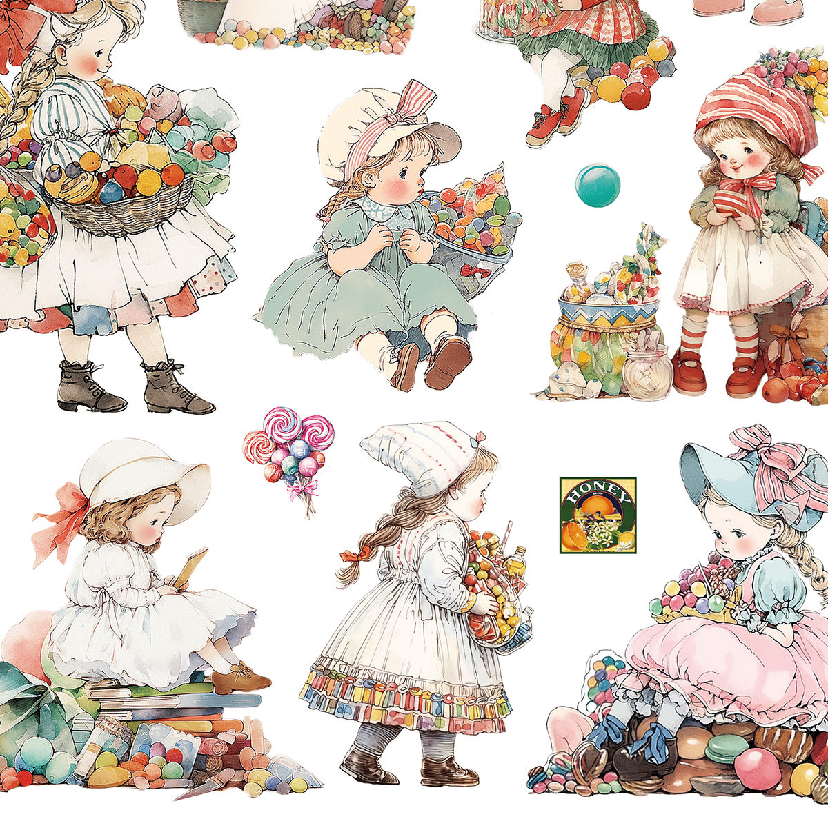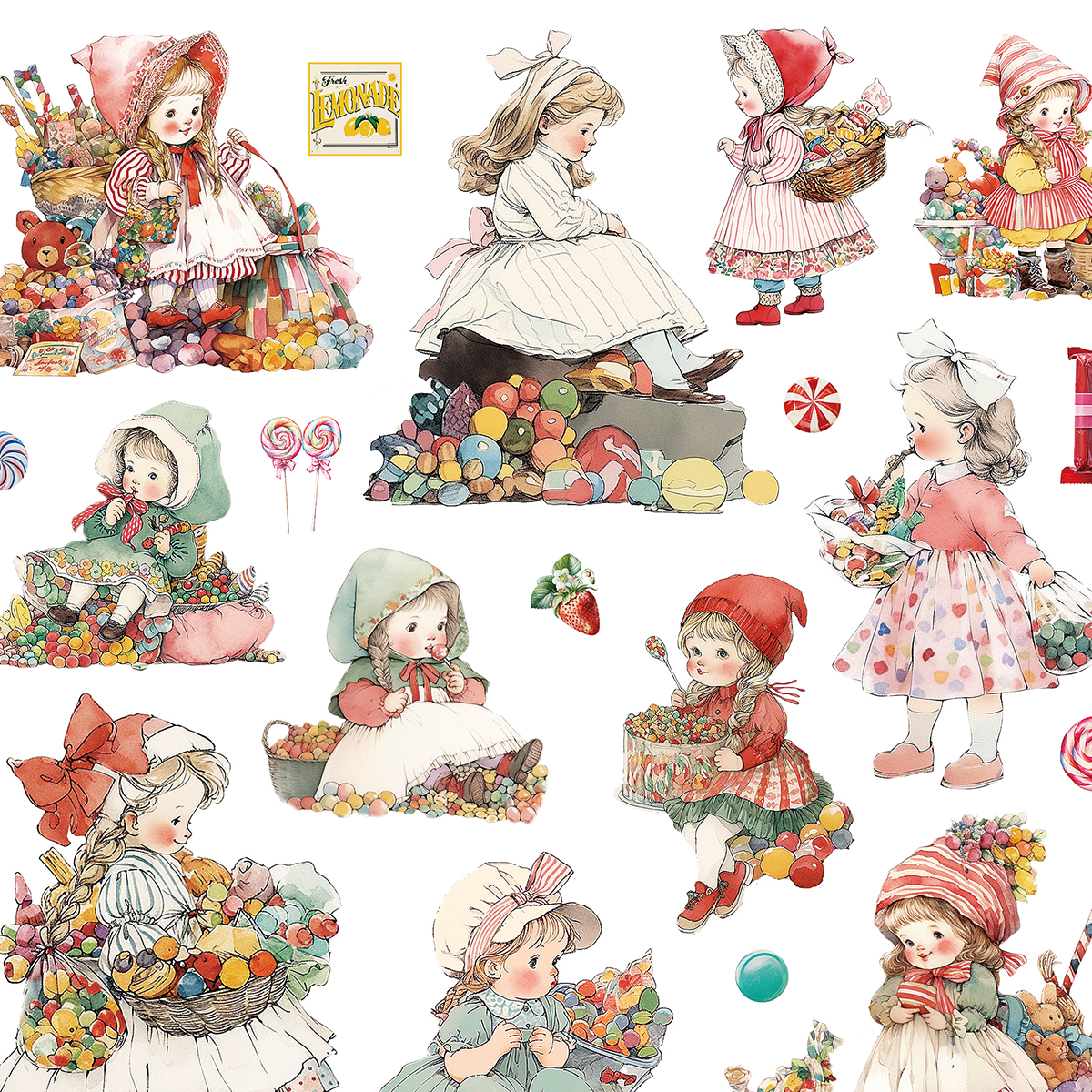 ステッカー【A5レトロお菓子女の子】