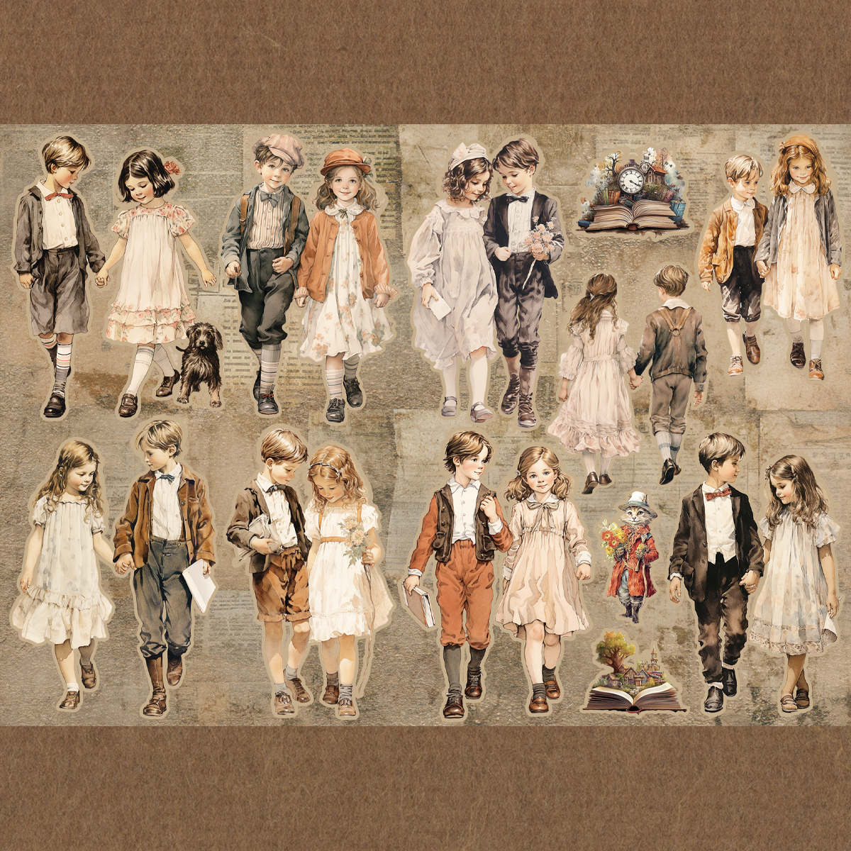 ペーパー【厚紙110:児童書カップル】 仕様 古い児童書の挿絵をイメージしたカップルイラストです。 テイストが落ち着いているのでビンテージ系にも似合います。 カットラインはありますが細かな雰囲気なのでA4サイズにしてさらにカットをしやすくしました。 素材が大きめになるので紙質も厚めにしています。 カットしてご利用ください。 素材は当店オリジナルです。 A4片面カラー印刷:上質紙110kg 10枚セット ※商用利用可能 ただしカットしたものをそのまま販売は御遠慮ください。 在庫状態 : 売り切れ ¥380 只今お取扱い出来ません