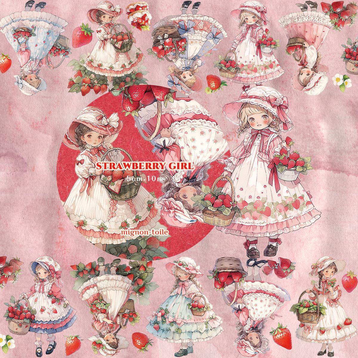 10種類の女の子と小さなアイテムの剥離紙つきのPETテープです。
