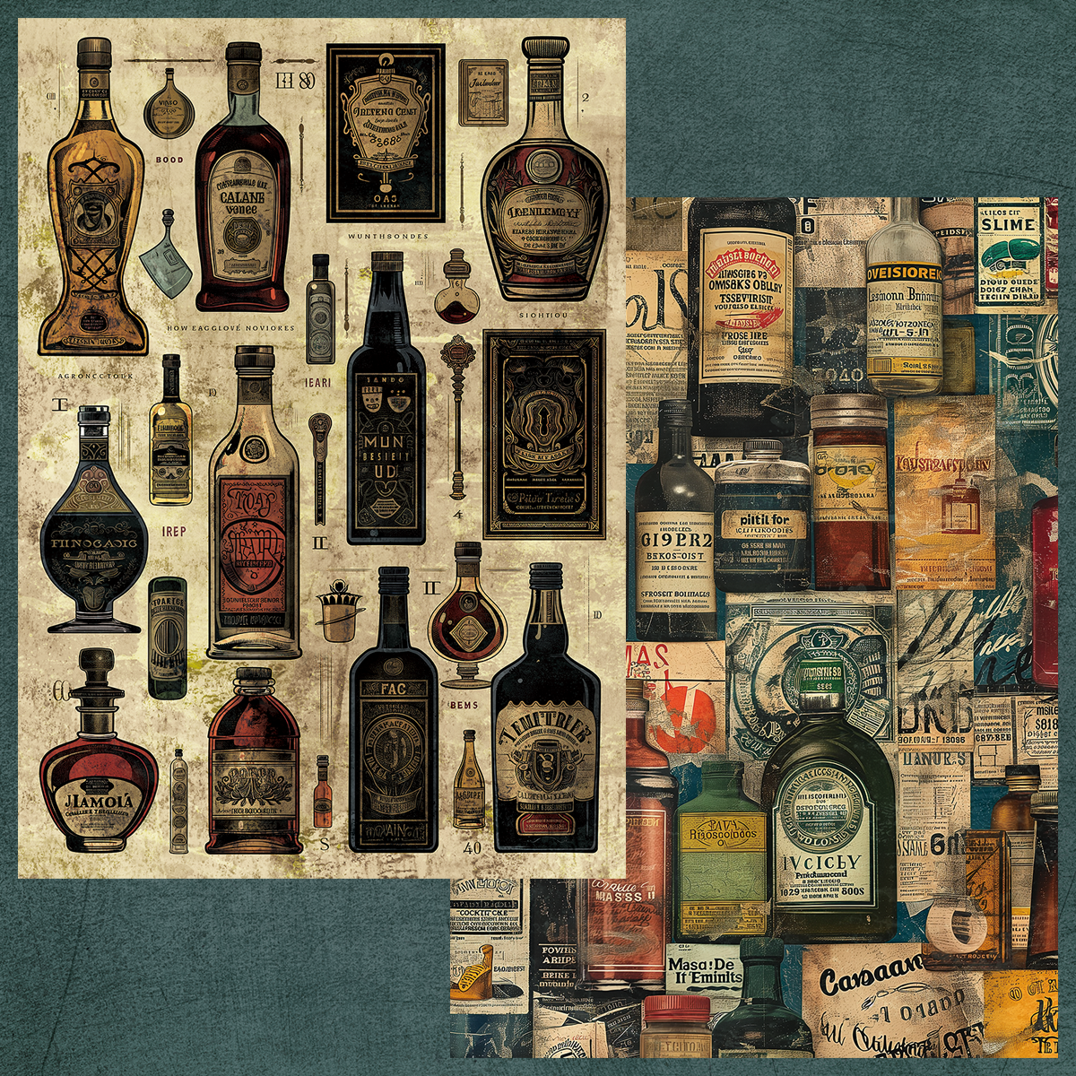 ペーパー【アルコールボトル】 仕様 ブランデーやウイスキーのボトルイメージのデザインです。 渋めの色合いなのでビンテージな雰囲気の作品作りにオススメです。 当店オリジナルの素材を使用しています。 A4両面カラー:上質紙90kg 10枚セット ※商用利用可 在庫状態 : 売り切れ ¥400 只今お取扱い出来ません