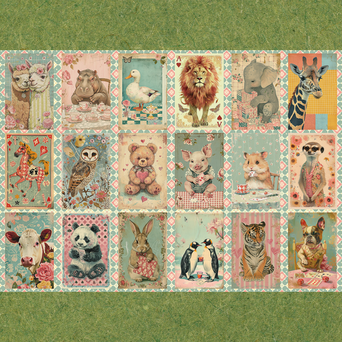 ペーパー【厚紙135kg:動物カードゲーム】 仕様 レトロ可愛い動物カードのデザインです。 カットしてコラージュなどにご利用頂けます。 当店オリジナルの素材を使用しています。 A4両面カラー:上質紙135kg 10枚セット ※商用利用可 在庫状態 : 売り切れ ¥480 只今お取扱い出来ません