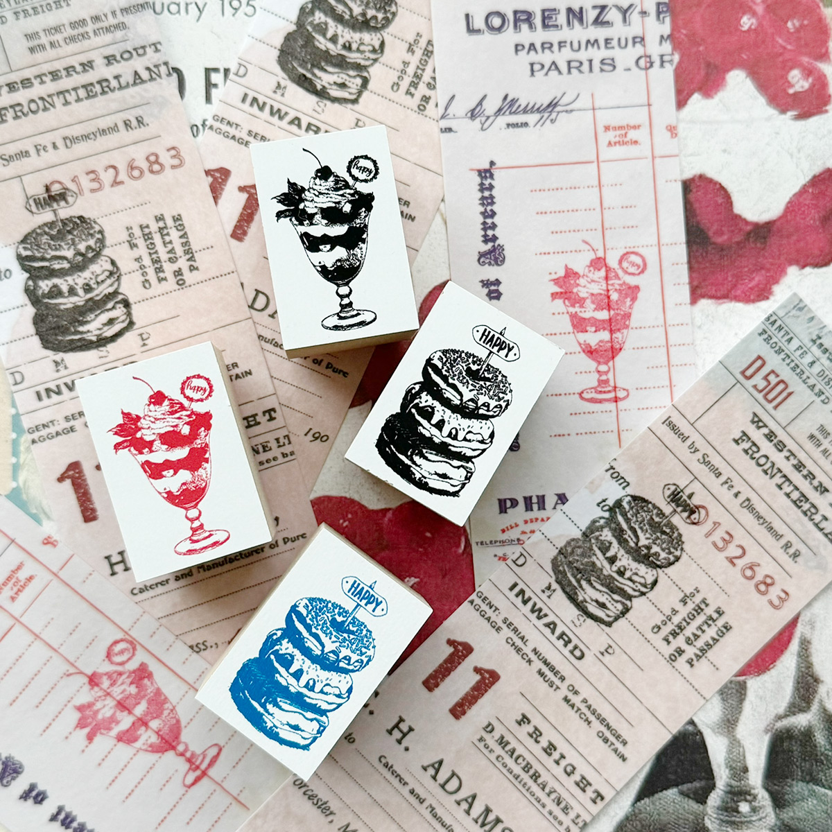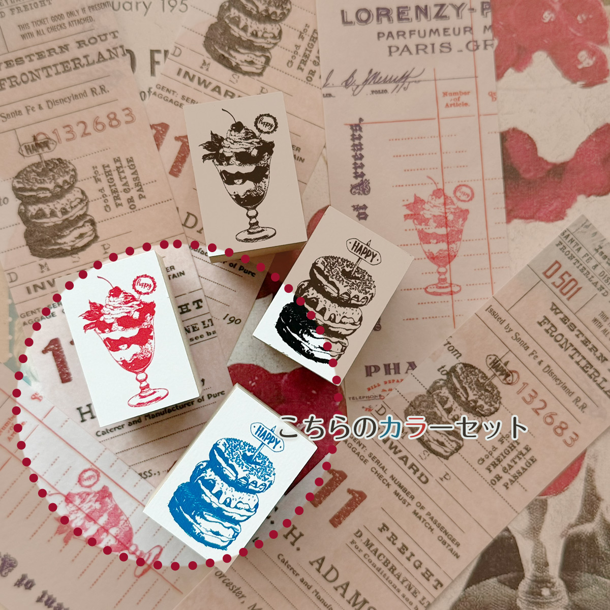 スタンプ【2点セットお菓子セットドーナツパフェ】 仕様 おいしそうなスタンプのカラフルセットです。 当店オリジナルの図案です。 MDF材(白箔) 木材チップを成型した素材で見出し面に白箔処理がされています。 メープルと比べてお買い得なスタンプです。 高さ2.4cm 本体の大きさ2×3cm ※図案は本体よりも小さめです。 ⚠️商用利用不可 (金銭の発生する物へは一切利用しないで下さい) ⚠️スタンプ同士の同梱は可。他商品との同梱不可です 在庫状態 : 売り切れ ¥1,300 只今お取扱い出来ません