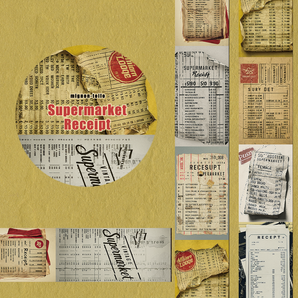 廉価版:2.5cm幅マスキングテープ【レシート】 仕様 幅広の2.5cmのテープです。 細かくカットしてもご利用頂けるデザインです。 簡易包装の廉価版のマスキングテープになります。 (裏面のパッケージデザインがありません) 通常マステよりもお値段安くご購入できる商品です。 25mm幅×10M 左出しタイプ (廉価版と通常版の違いが分かりやすくするため左出しになります) 中国産 ⚠️粘着力はMT社様などと比べると弱めです。ご了承ください。 和紙素材ですので透けてポストより暗めの色合いです。 デザインのつなぎ目部分が少し濃くなっています。 在庫状態 : 売り切れ ¥600 只今お取扱い出来ません