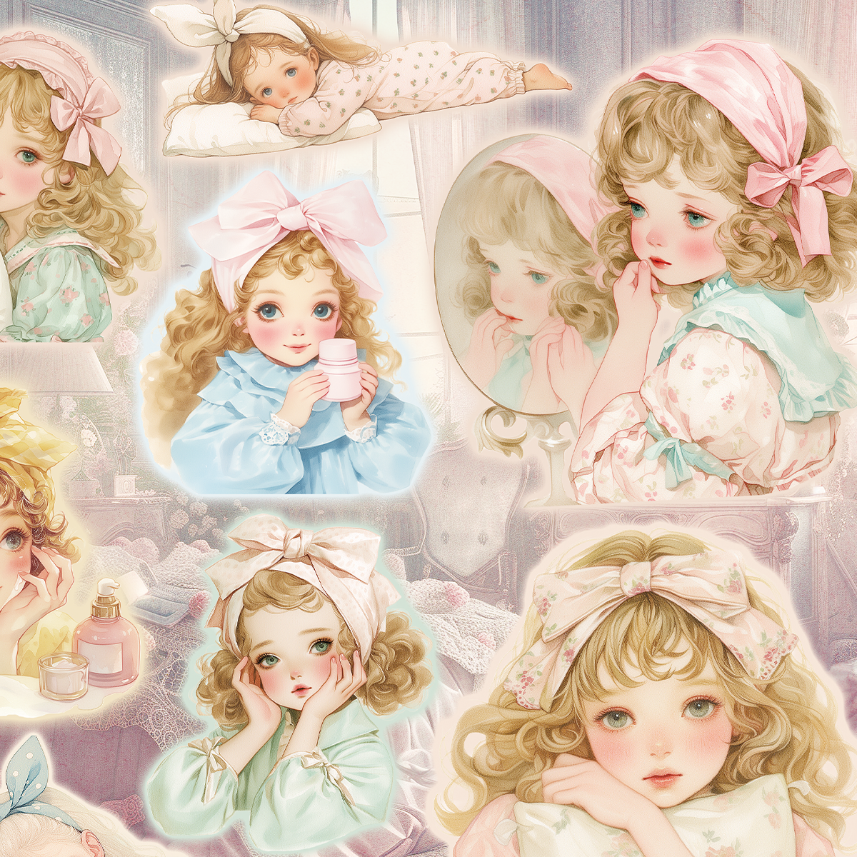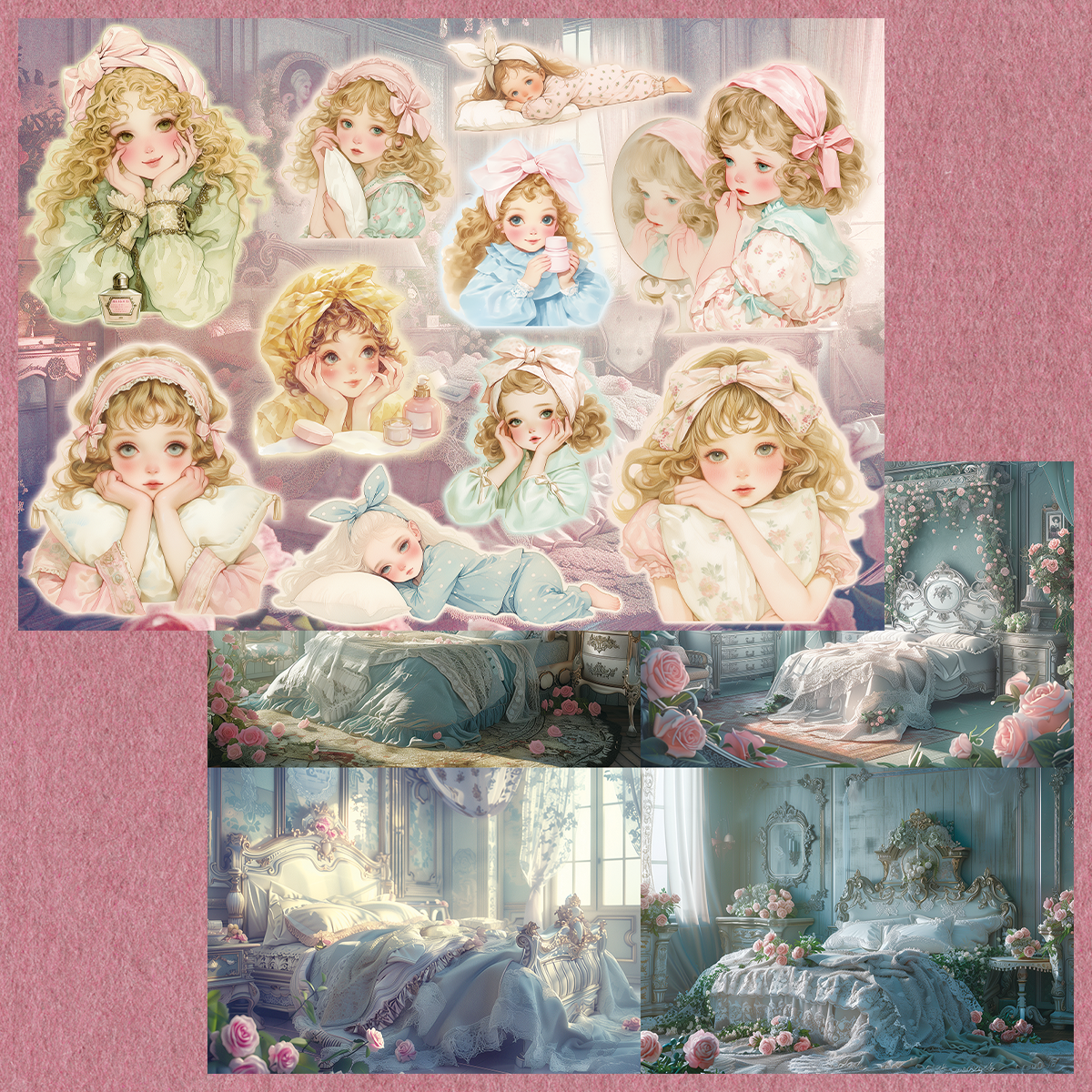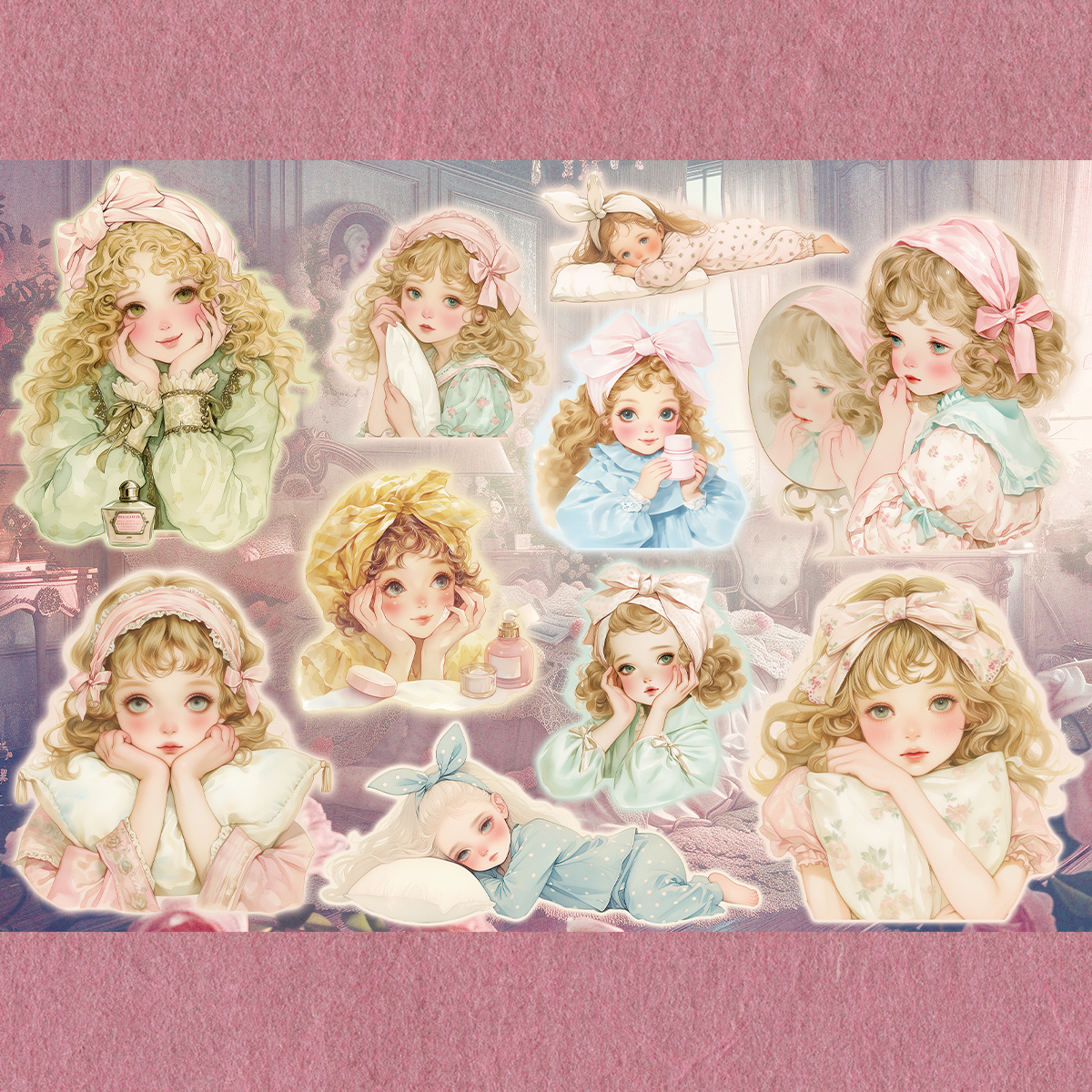 ペーパー【厚紙110:寝る準備女の子】 仕様 寝る前の女の子たちのコラージュシートです。 片面は背景などに使用できそうな四分割タイプの可愛いベッドのあるお部屋素材です。 カットしてご利用ください。 当店オリジナルの素材を使用しています。 A4両面カラー印刷:上質紙110kg 10枚セット ※商用利用可能 ただしカットしたものをそのまま販売は御遠慮ください。 在庫状態 : 売り切れ ¥450 只今お取扱い出来ません