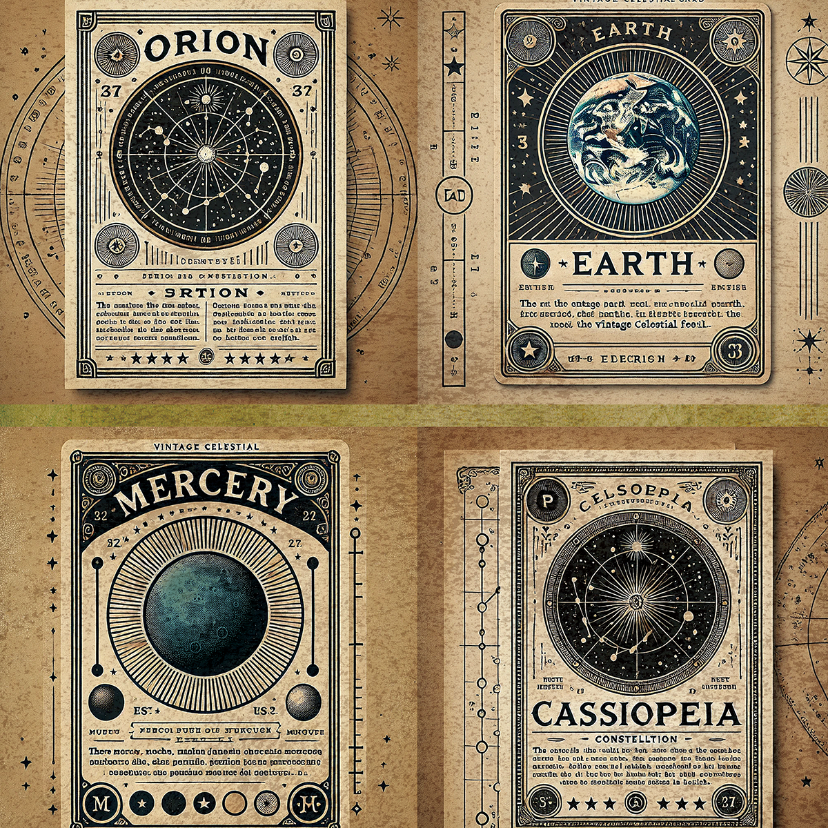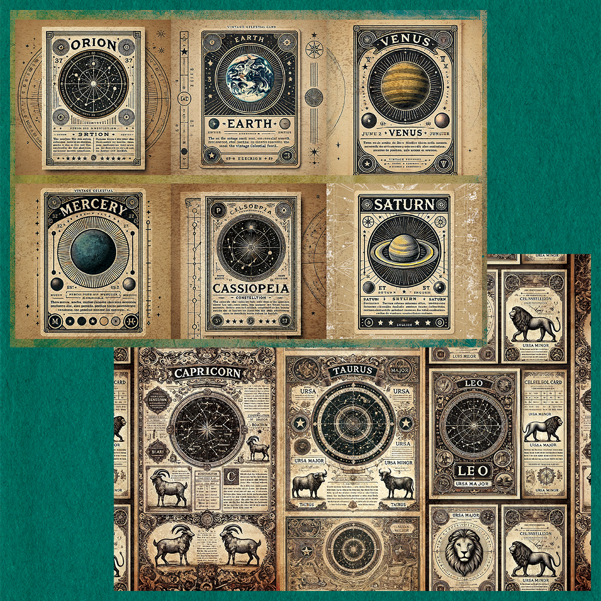 ペーパー【天体カード】 仕様 ビンテージの雰囲気の天体カードです。 カットしてもそのままでもご利用いただけます。 当店オリジナルの素材を使用しています。 A4両面カラー:上質紙90kg 10枚セット ※商用利用可 在庫状態 : 売り切れ ¥400 只今お取扱い出来ません