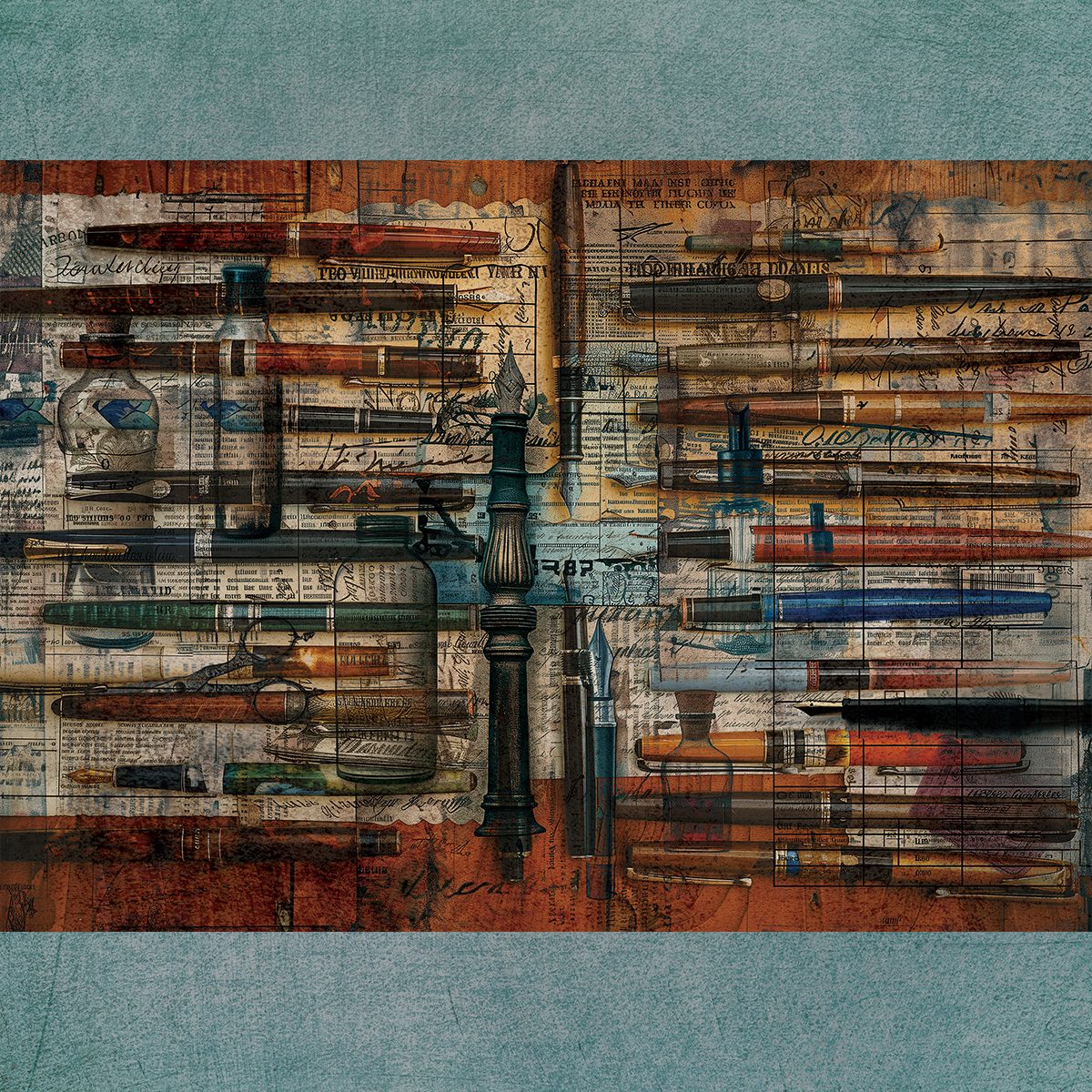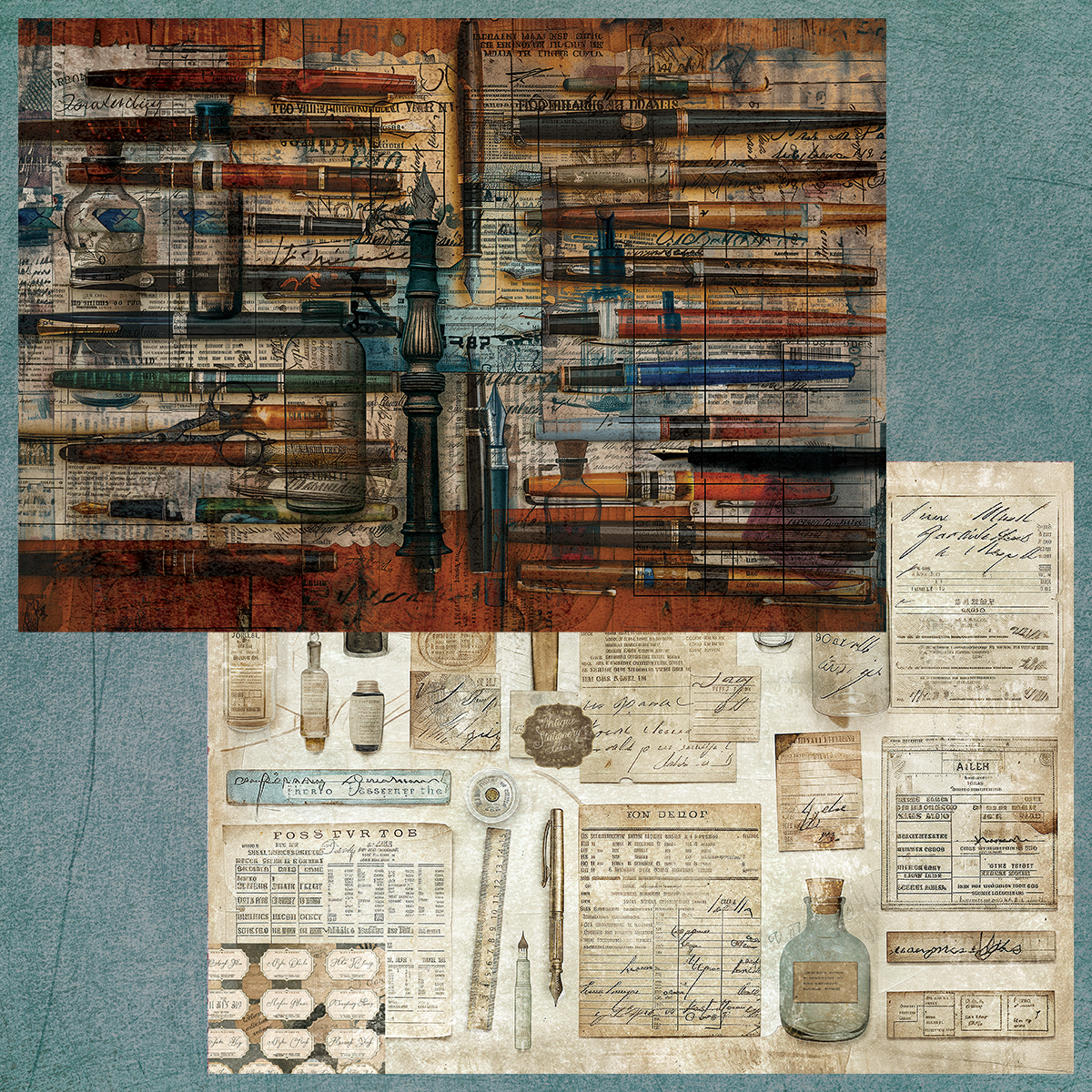 ペーパー【厚紙180kg:ビンテージ文具コラージュ】