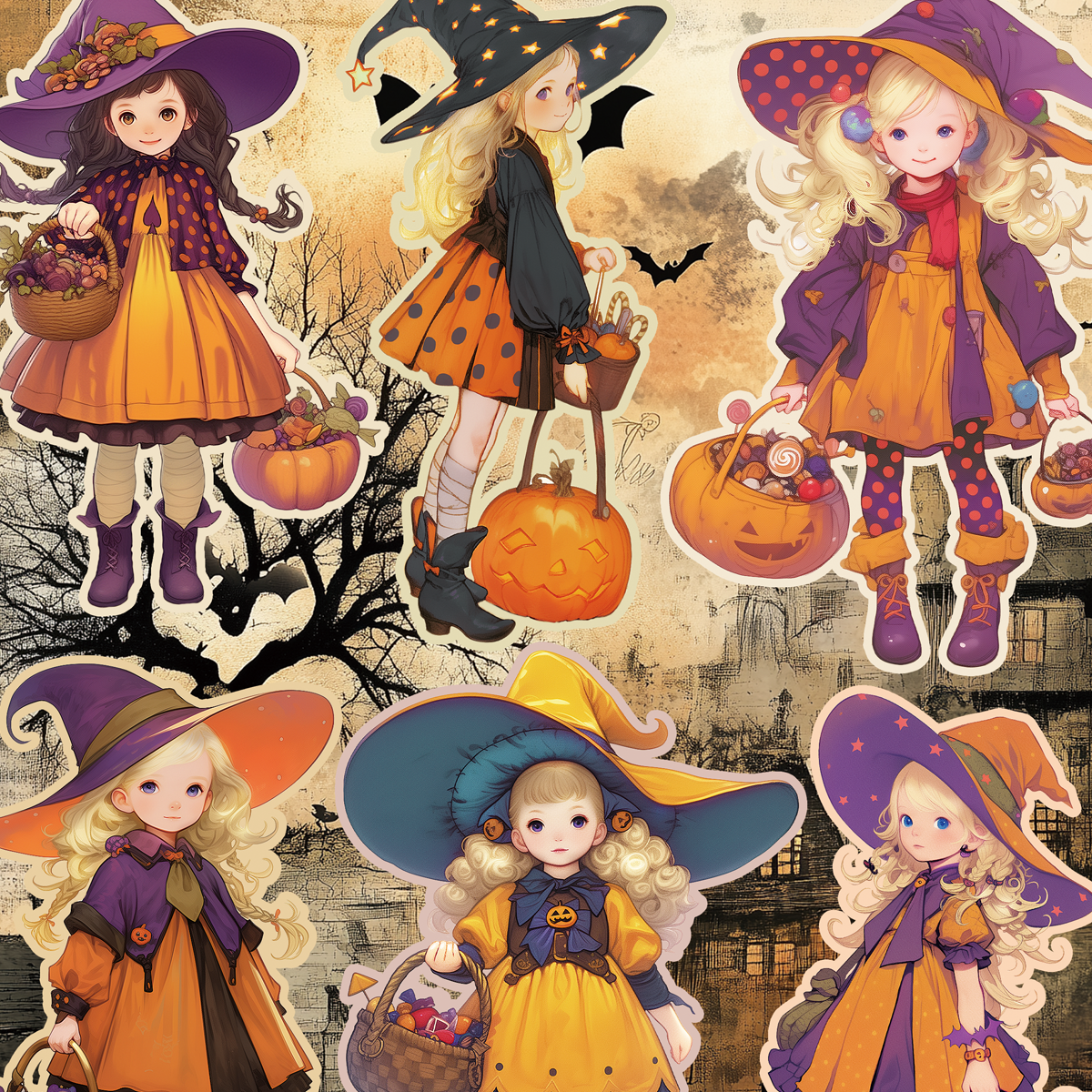 ハロウィンの女の子コラージュシートです。