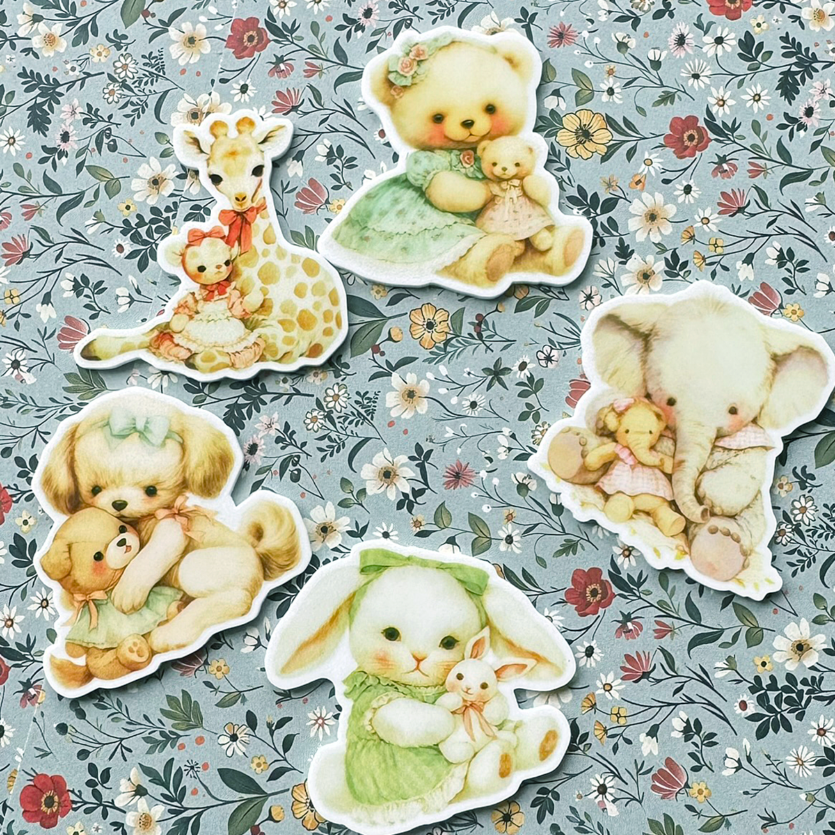 プラパーツ【ぬいぐるみ動物】 仕様 プラスチック材質のパーツです。 1枚ずつで5種類楽しめるセットです。 ダイカットされているのでコラージュなどにご利用ください。 高さ約4cm程度 各種1枚ずつ5個セット 材質:樹脂・片面印刷 中国産 在庫状態 : 売り切れ ¥380 只今お取扱い出来ません