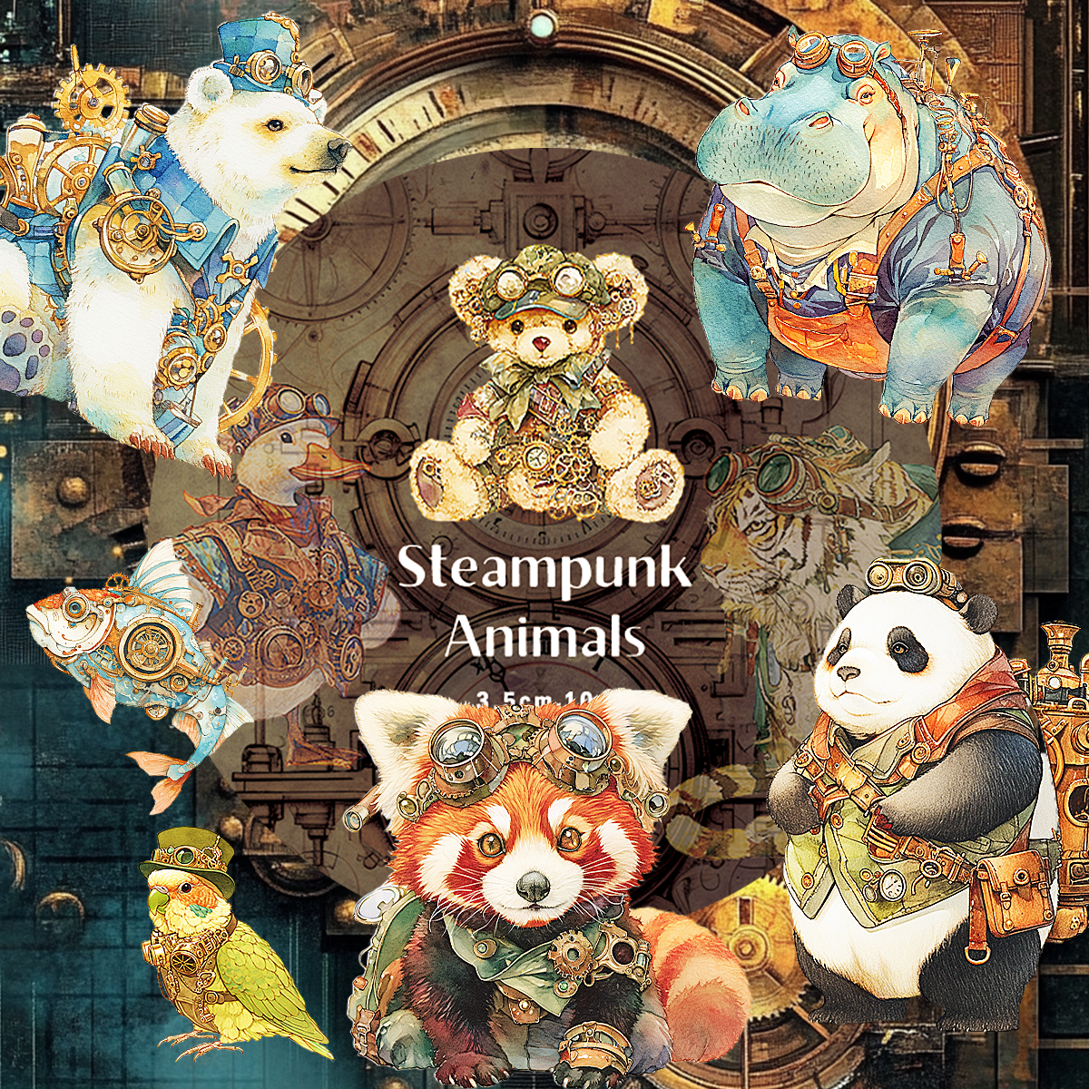 透け感あり:PETテープ【3.5cm幅:スチームパンク動物】