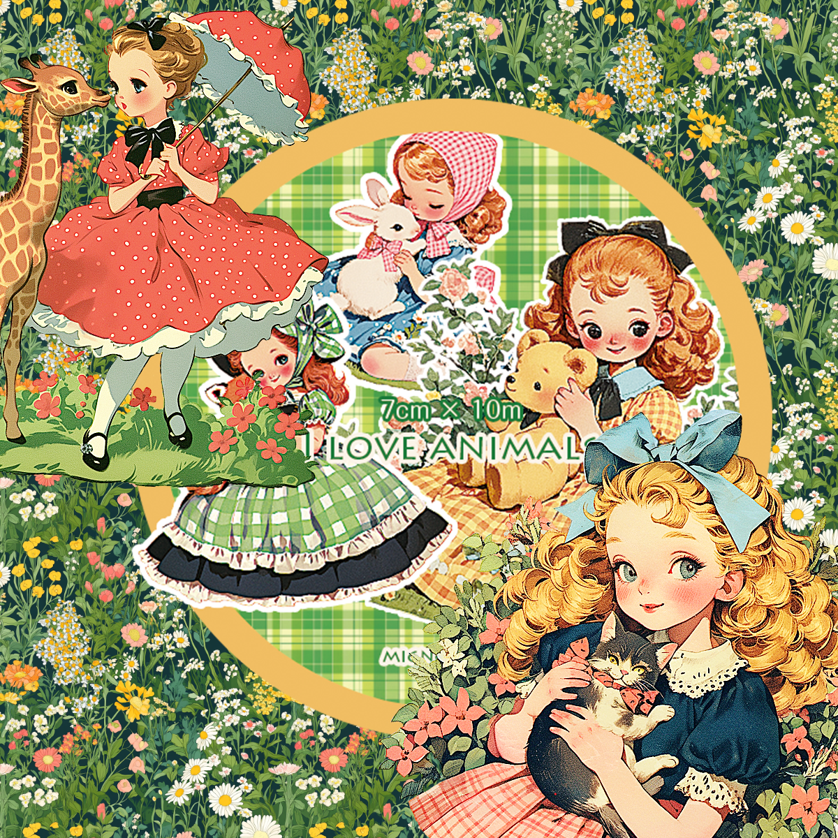 透け感無:PETテープ【7cm幅:女の子動物】