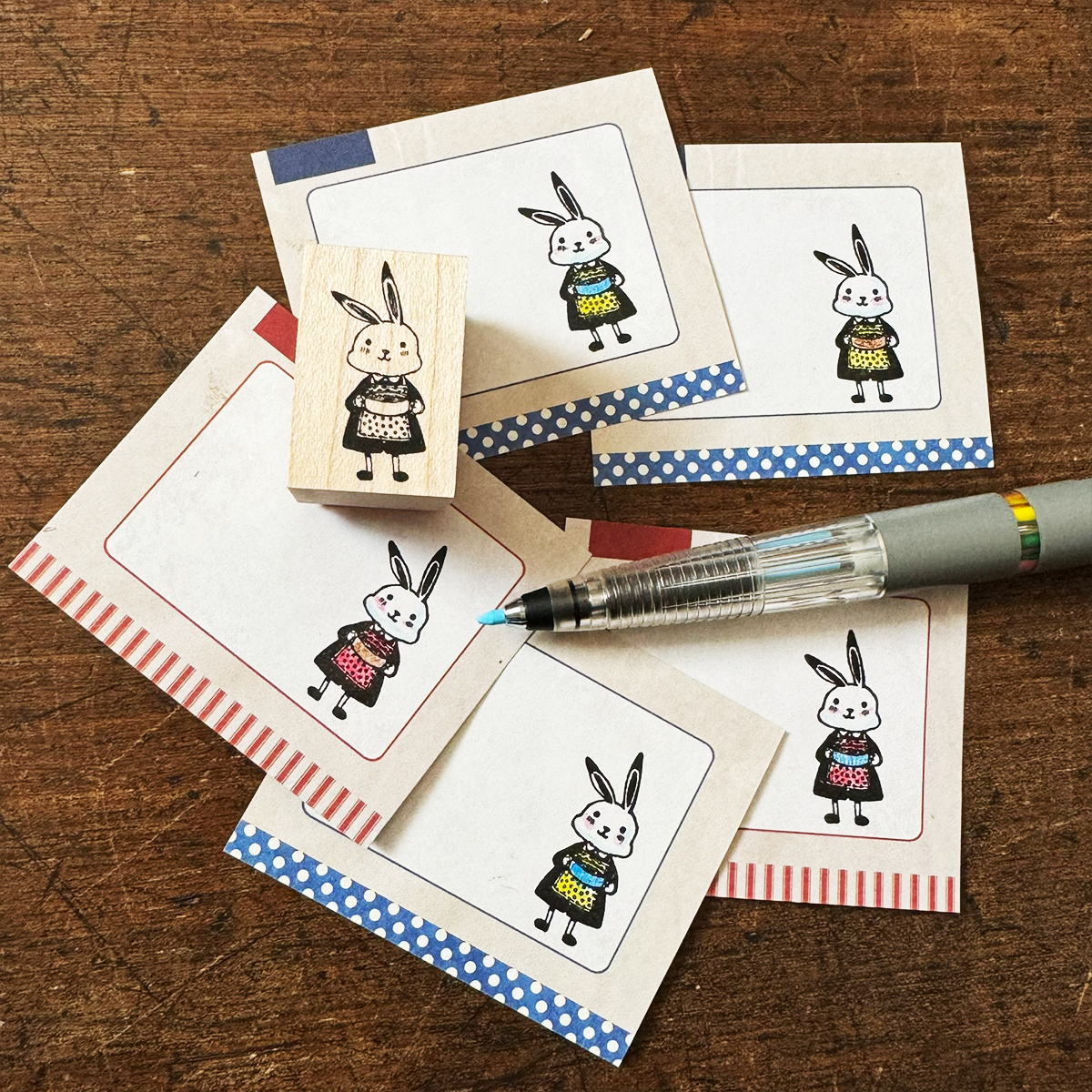 スタンプ【ナチュラル料理うさぎ】 仕様 当店オリジナルの図案です。 メープル材 高さ2.4cm 本体の大きさ3×2cm ※図案は本体よりも小さめです。 ⚠️商用利用不可 (金銭の発生する物へは一切利用しないで下さい) ⚠️スタンプ同士の同梱は可。他商品との同梱不可です 在庫状態 : 売り切れ ¥700 只今お取扱い出来ません