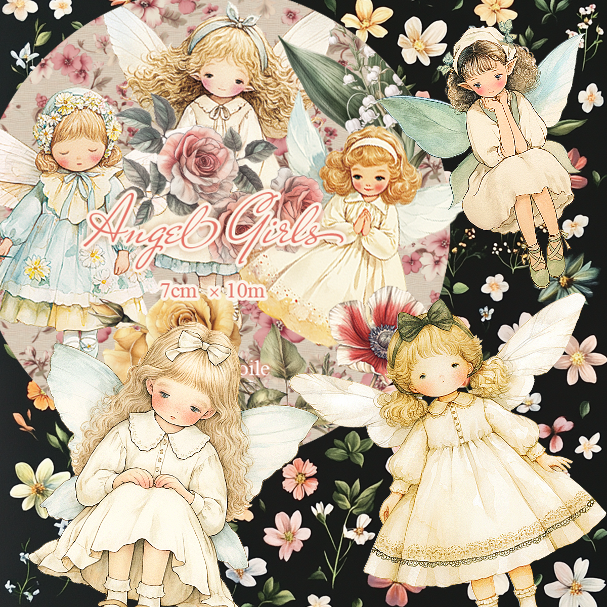 透け感無:PETテープ【7cm幅:天使女の子】