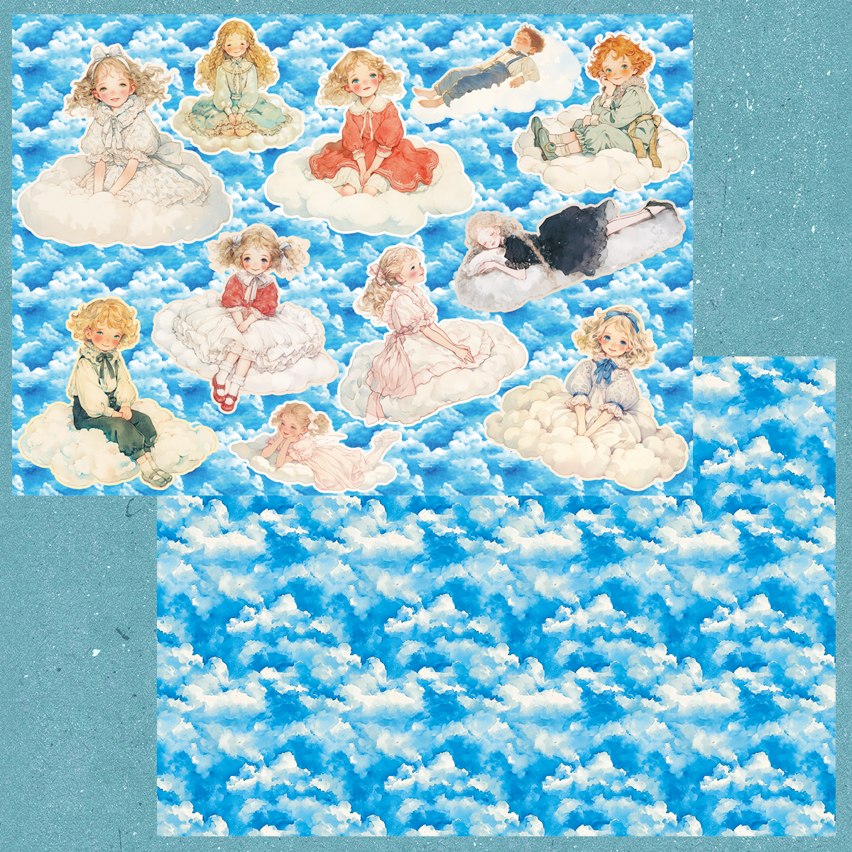 雲の上で楽しそうにすごしている子供たちのコラージュシートです。