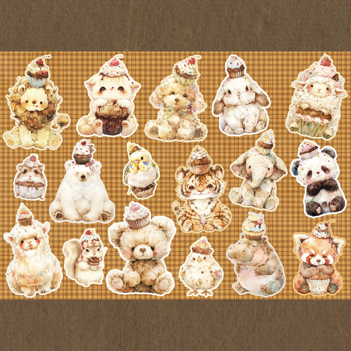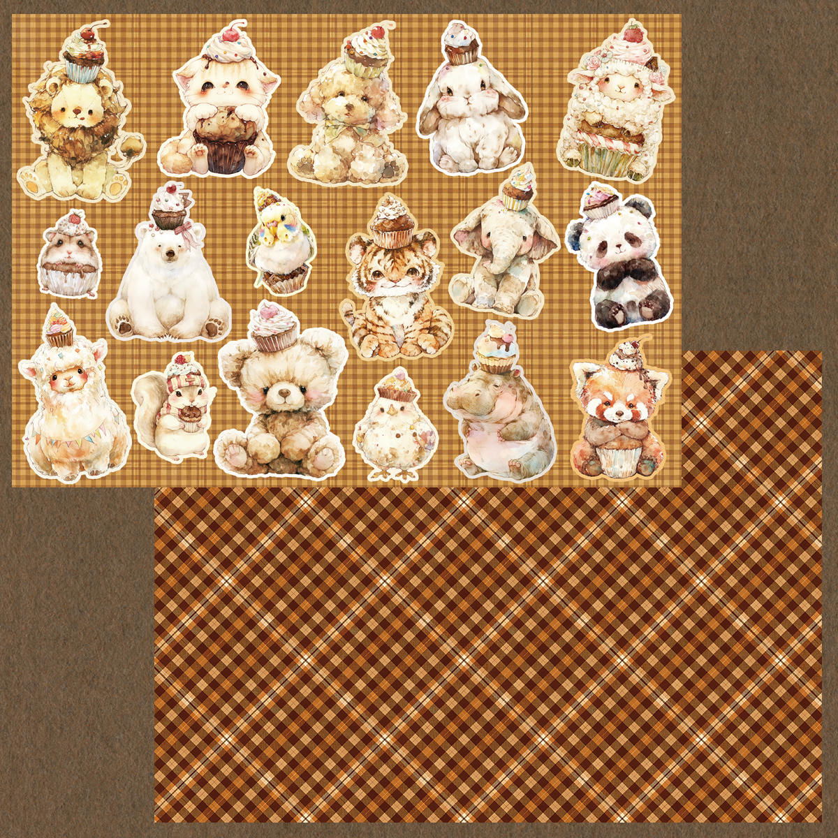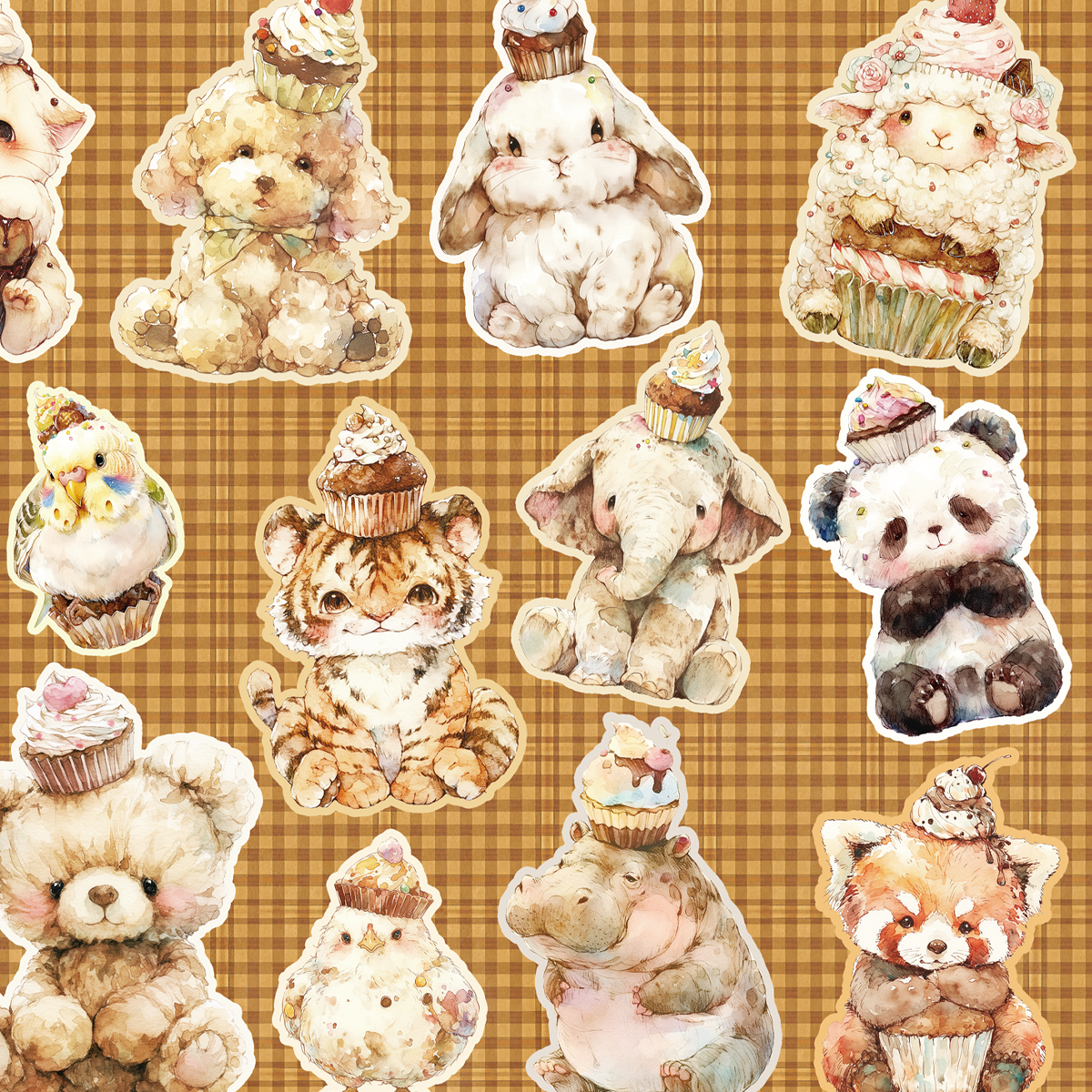 カップケーキを頭に乗せた動物のコラージュシートです。