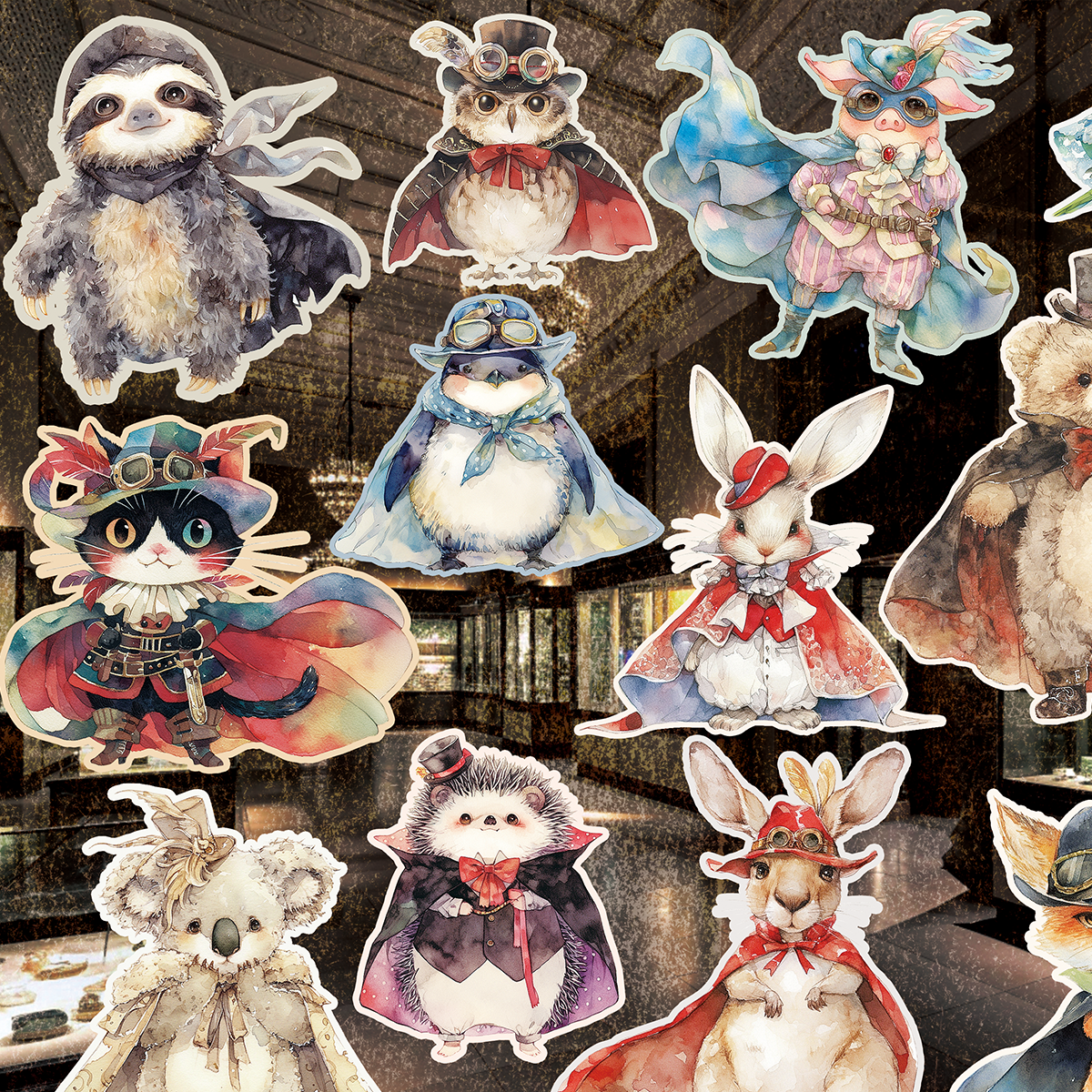 怪盗コスチュームの動物イラストのコラージュシートです。