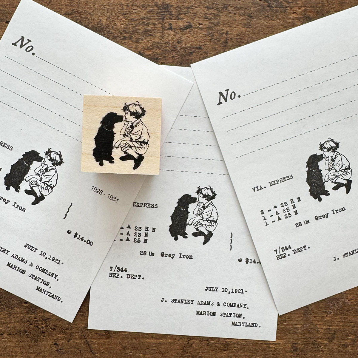 スタンプ【しゃがみ込む男の子と黒犬】
