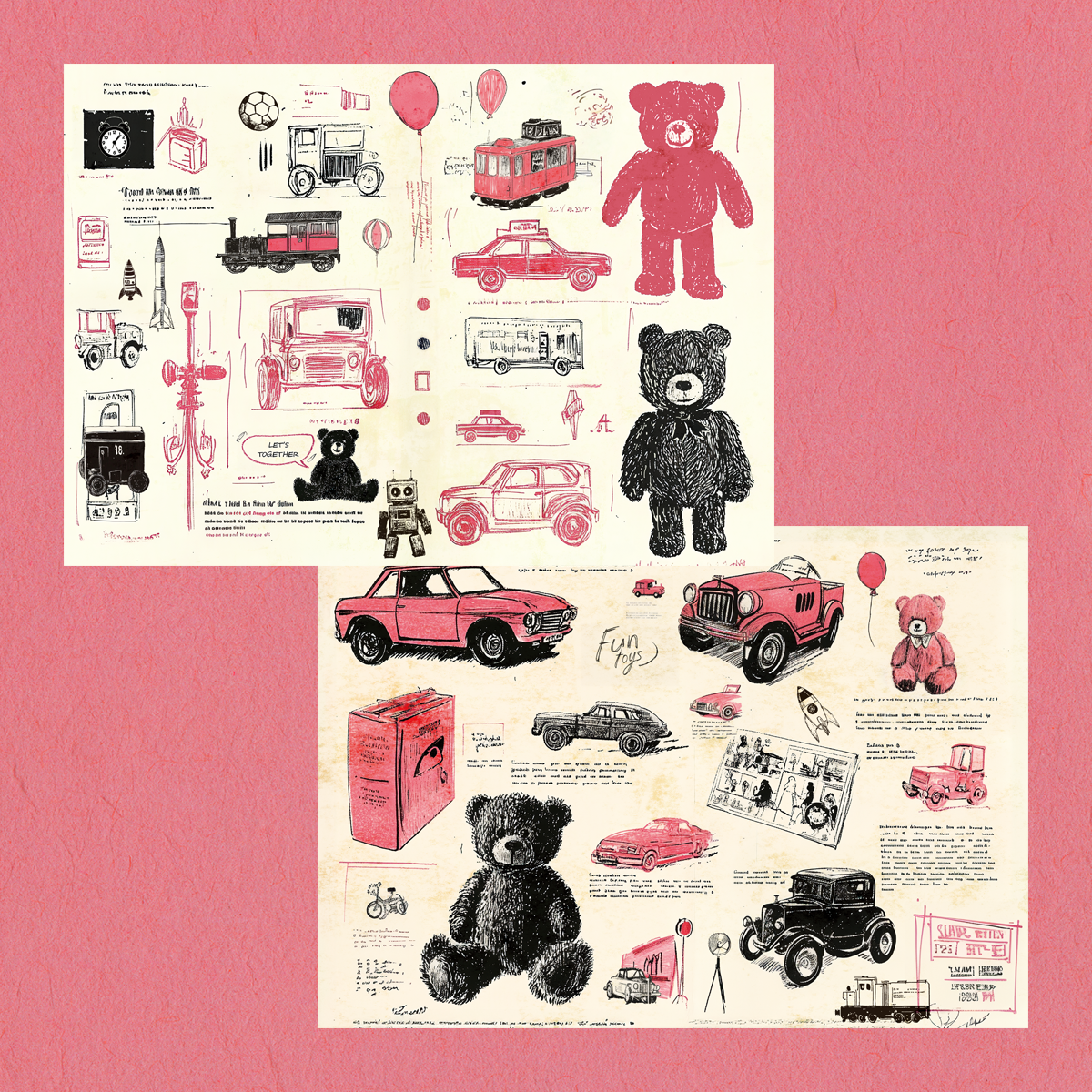 ペーパー【ピンクと黒のおもちゃカタログ】 仕様 ピンクと黒色のカラーで仕上げたおもちゃのカタログ。 ラフな線画のイラストがポイントです。 当店オリジナルの素材を使用しています。 A4両面カラー:上質紙90kg 10枚セット ※商用利用可 ※当店ではデフォルメされた素材などを使用しています。リアルさをお求めの方は見本の詳細を見て頂きご購入をお願いいたします。 ※AIでの素材作成、テキスト作成やビンテージの素材を使用しておりますので苦手な方はご遠慮ください。 在庫状態 : 売り切れ ¥400 只今お取扱い出来ません