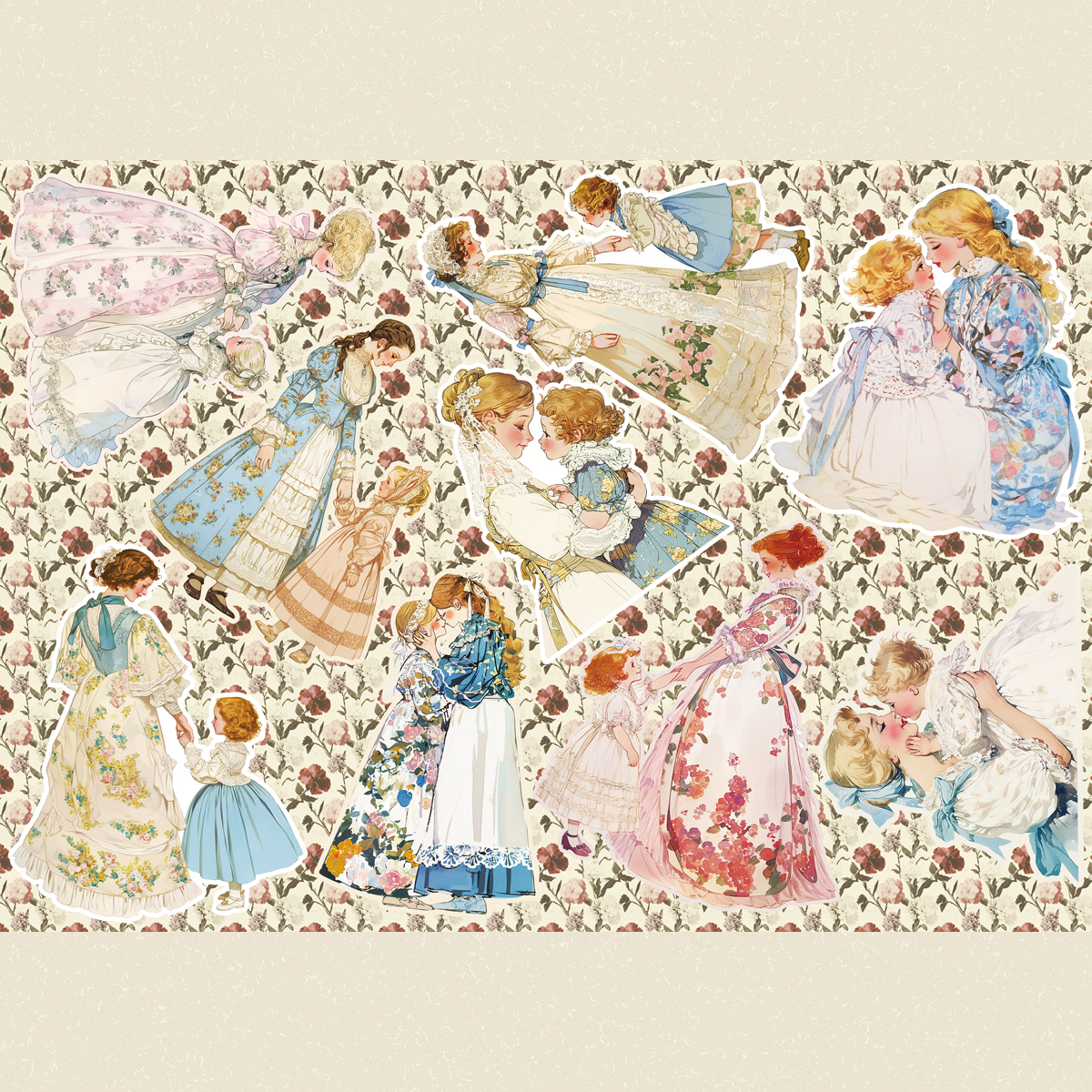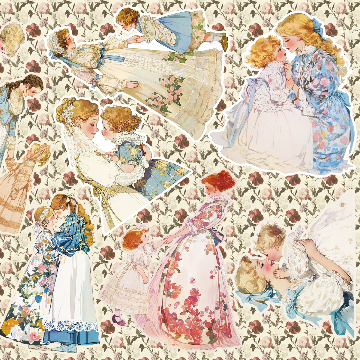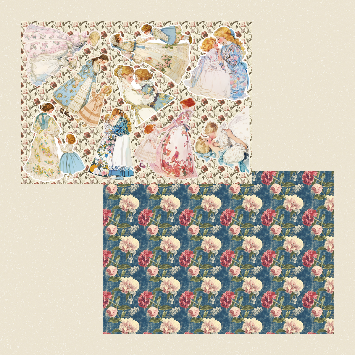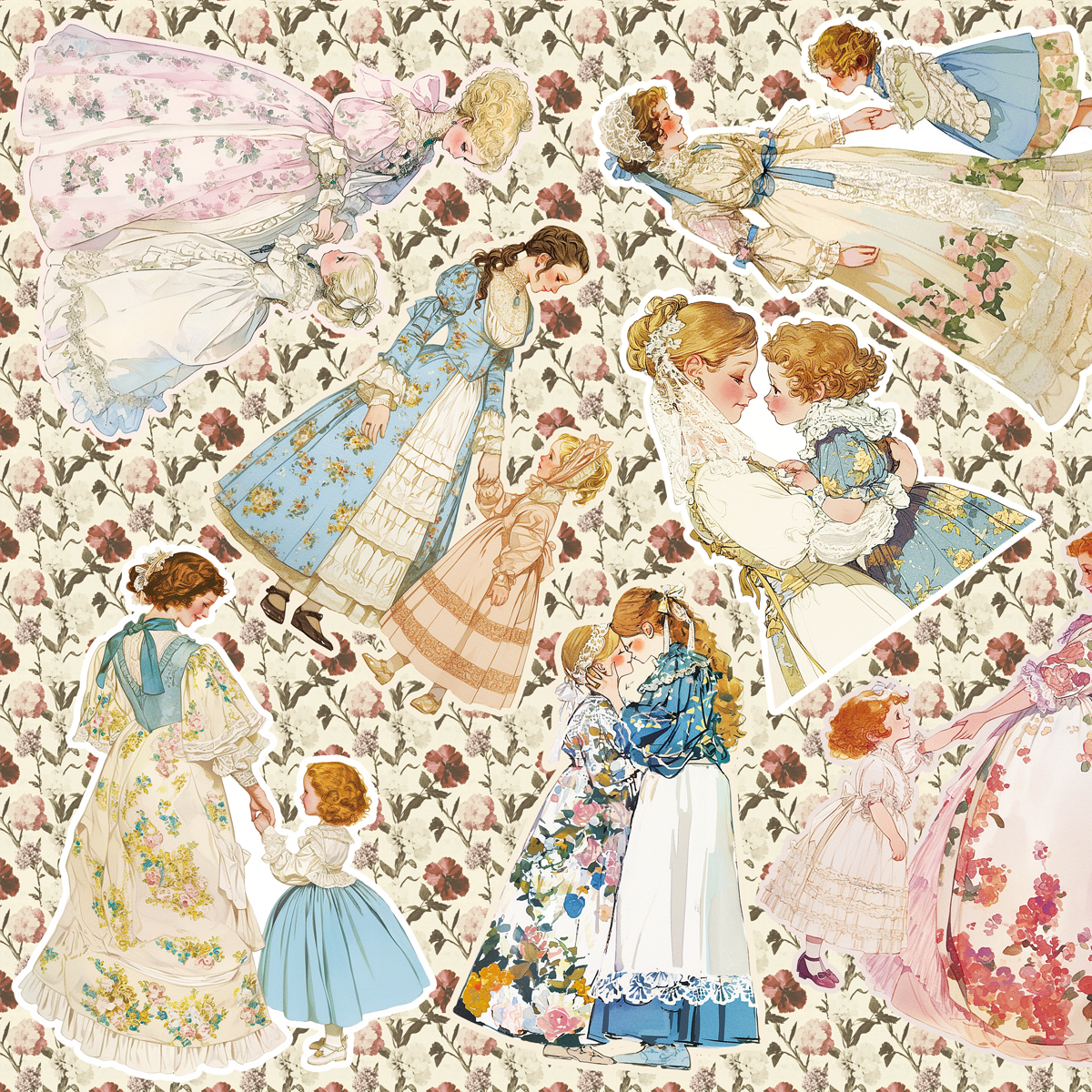 ヴィクトリアンドレスを着た親子のコラージュシートです。