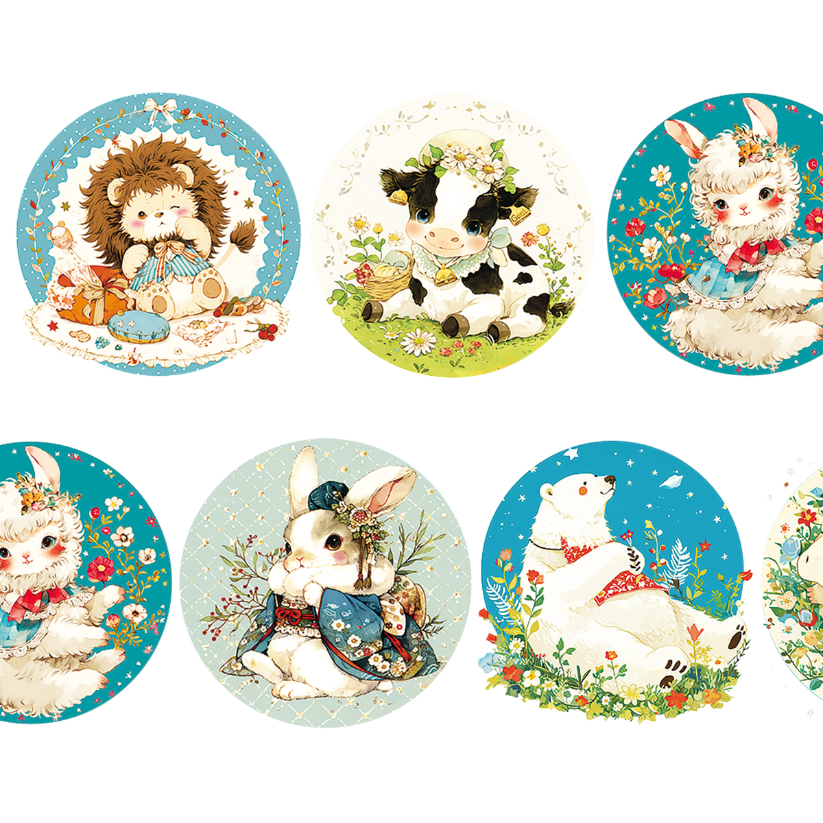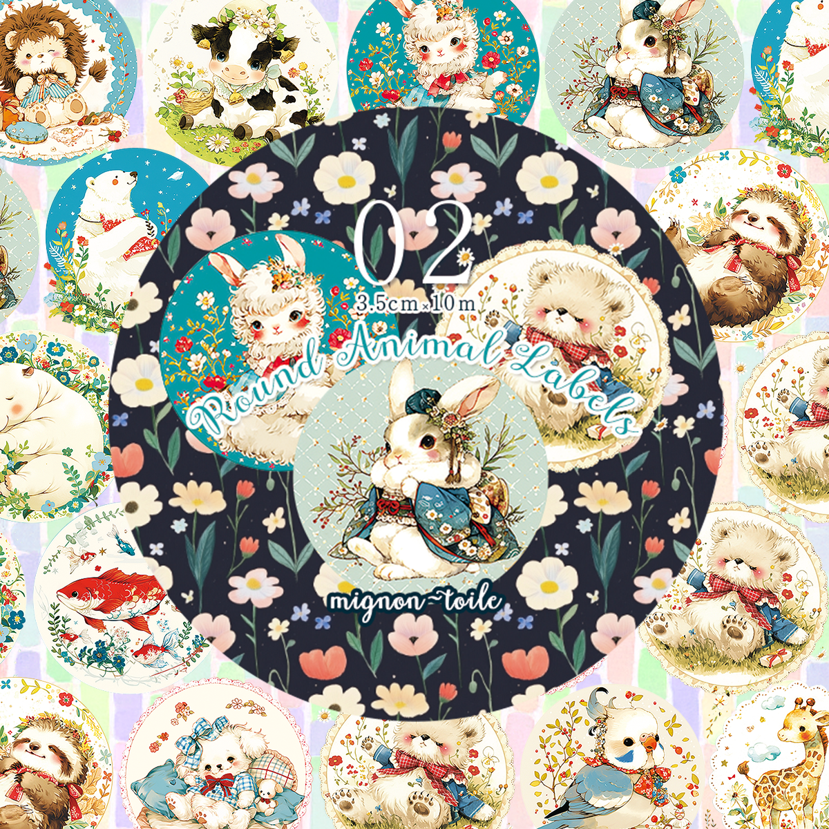 透け感あり:PETテープ【3.5cm幅:動物丸ラベル02】