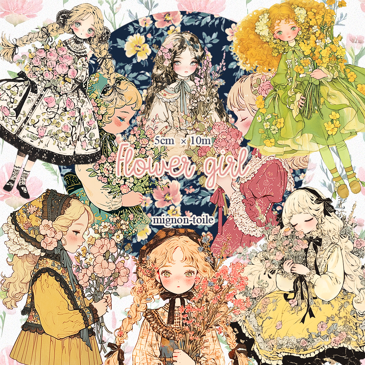 透け感無:PETテープ【5cm幅:ドレスお花女の子】