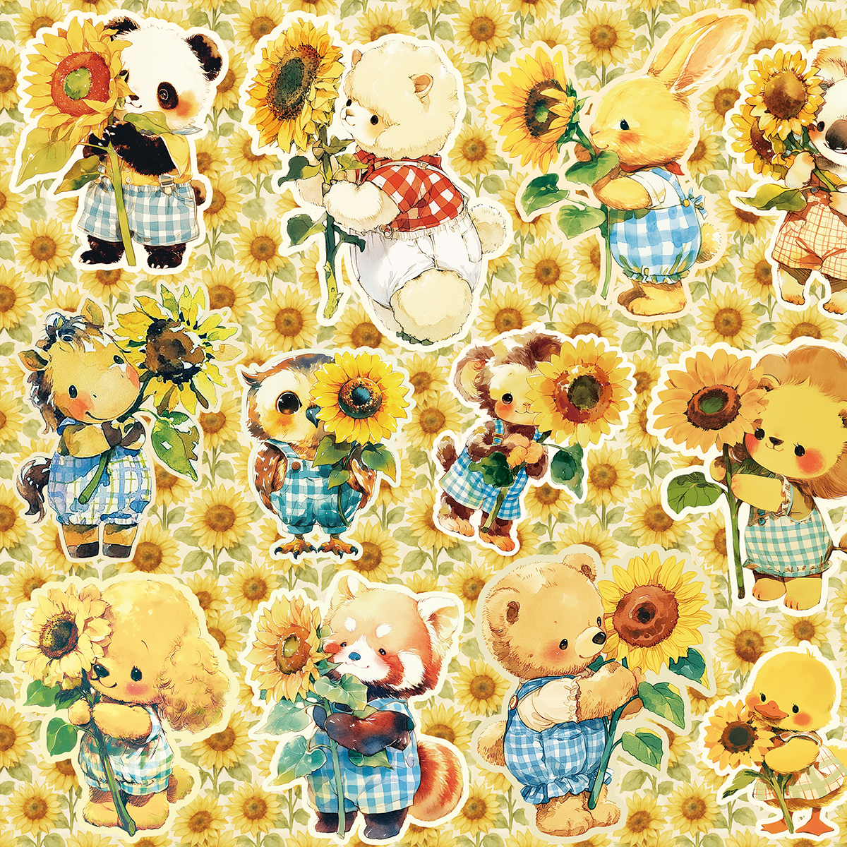 ひまわりと動物のコラージュシートです。