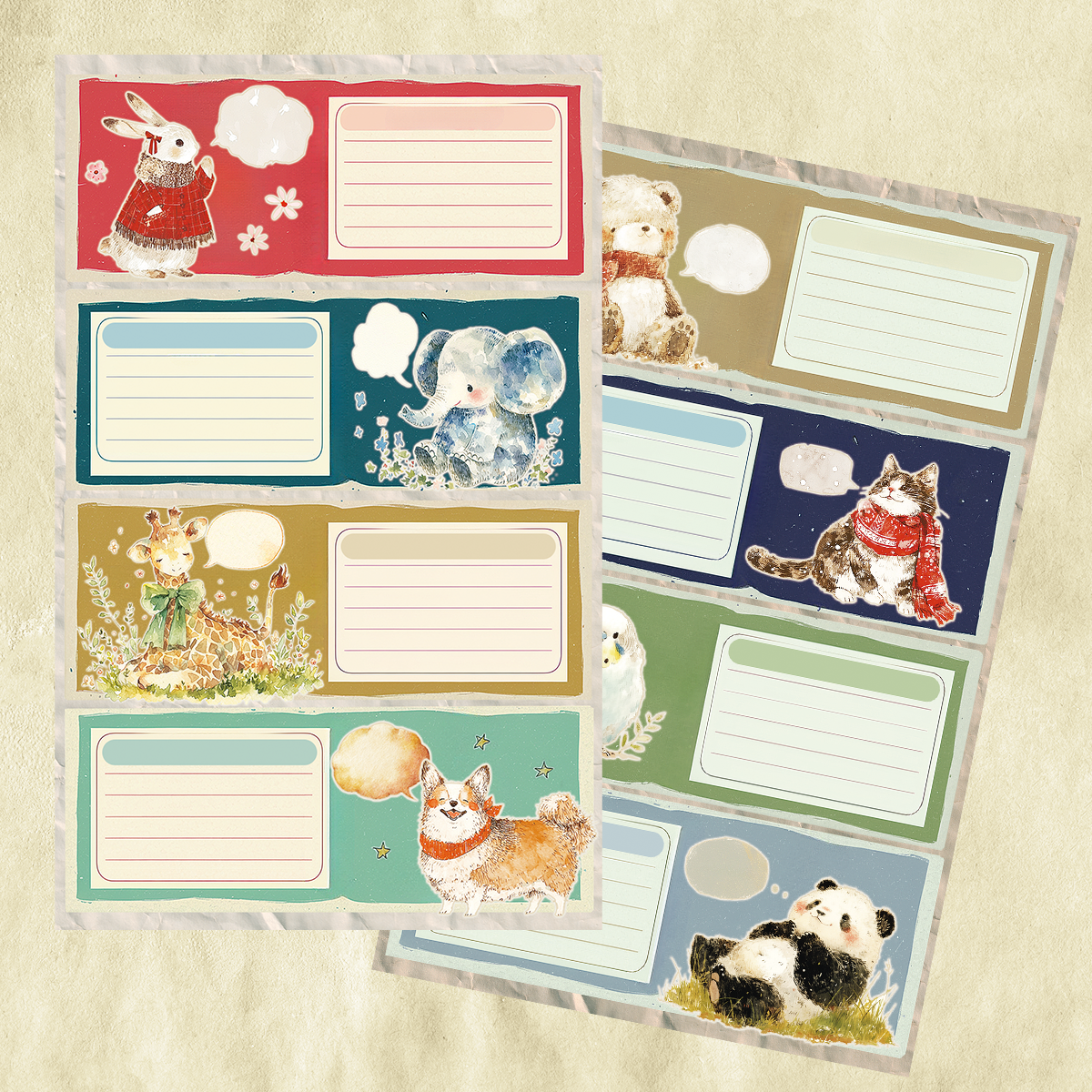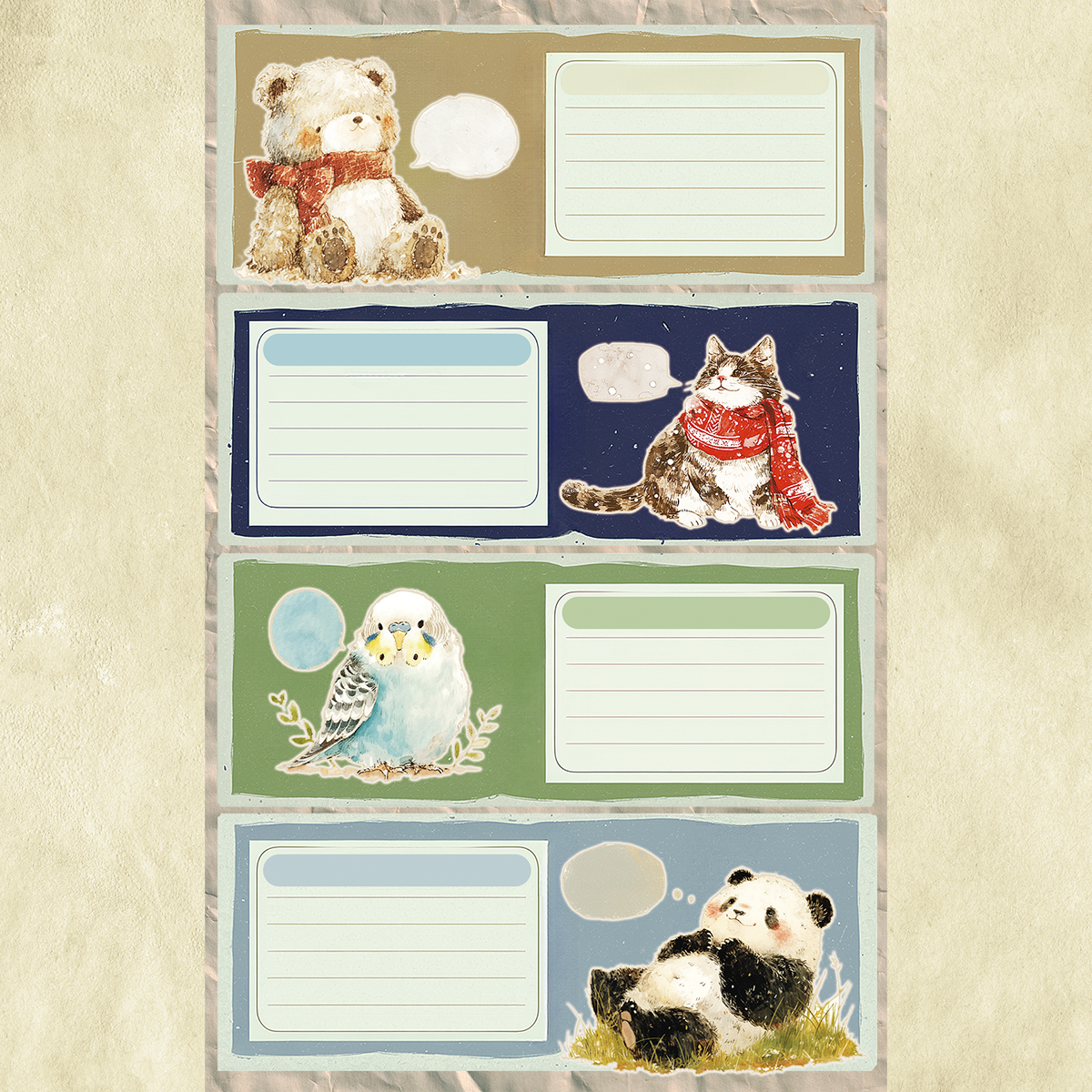 可愛い動物の絵柄の四分割デザインです。