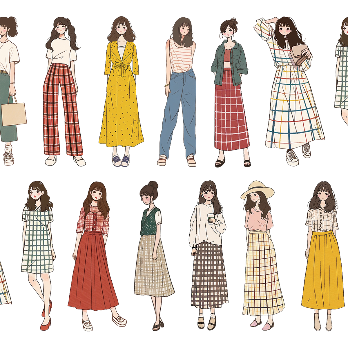 カットラインあり:マットPETテープ【5cm幅:ナチュラルファッション女の子】