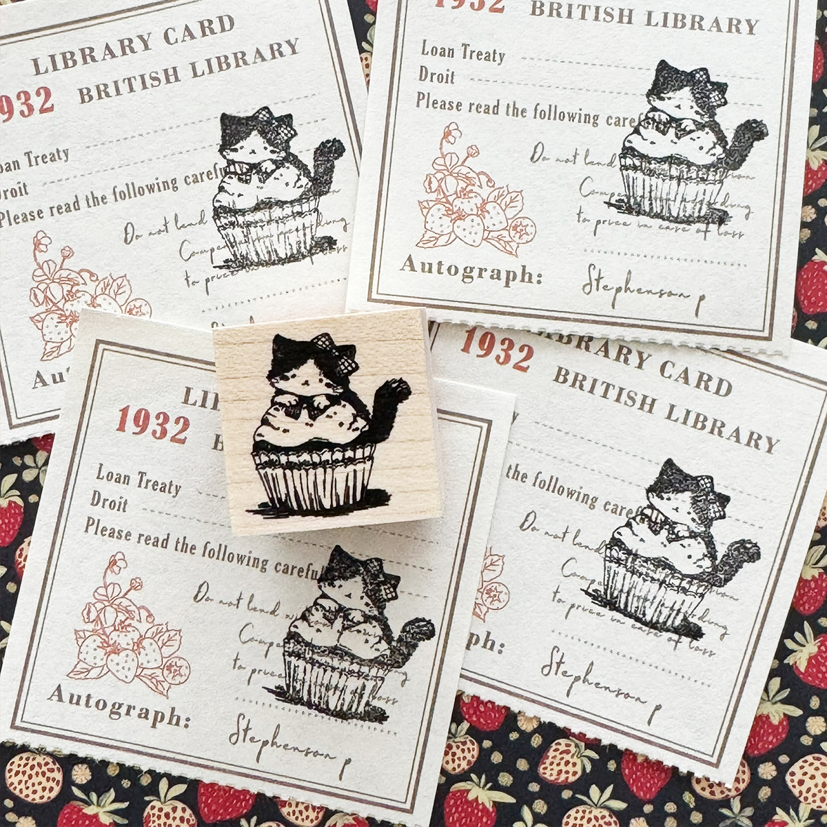 スタンプ【カップケーキリボン猫】 仕様 当店オリジナルの図案です。 メープル材 高さ2.4cm 本体の大きさ2.5×2.5cm ※図案は本体よりも小さめです。 ⚠️商用利用不可 (金銭の発生する物へは一切利用しないで下さい) 在庫状態 : 売り切れ ¥700 只今お取扱い出来ません