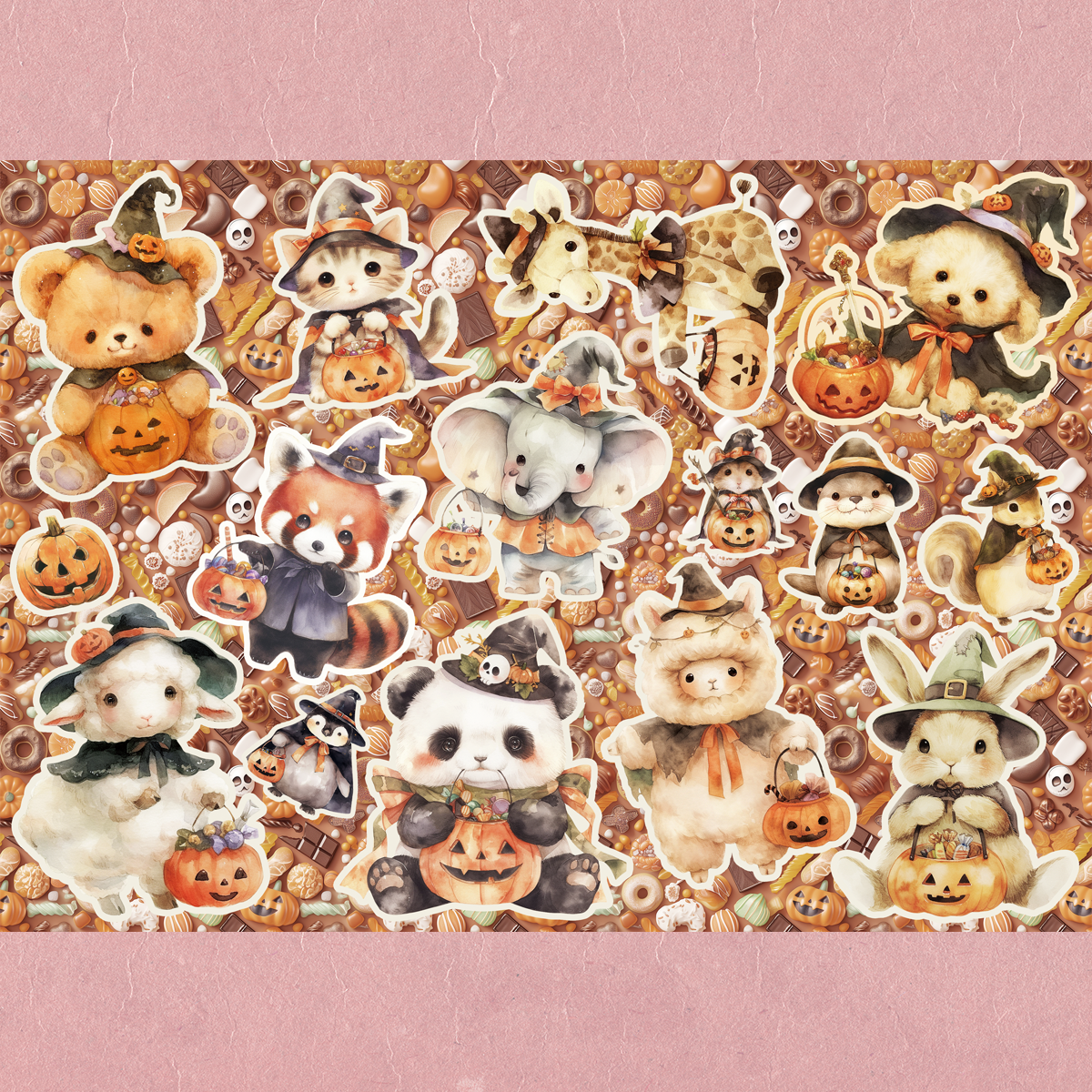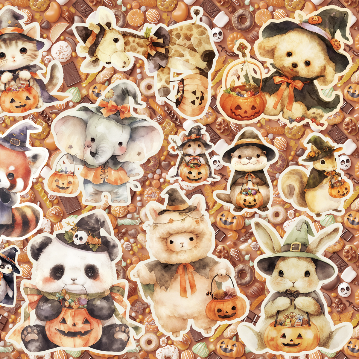 ハロウィンのコスプレの動物コラージュシートです。