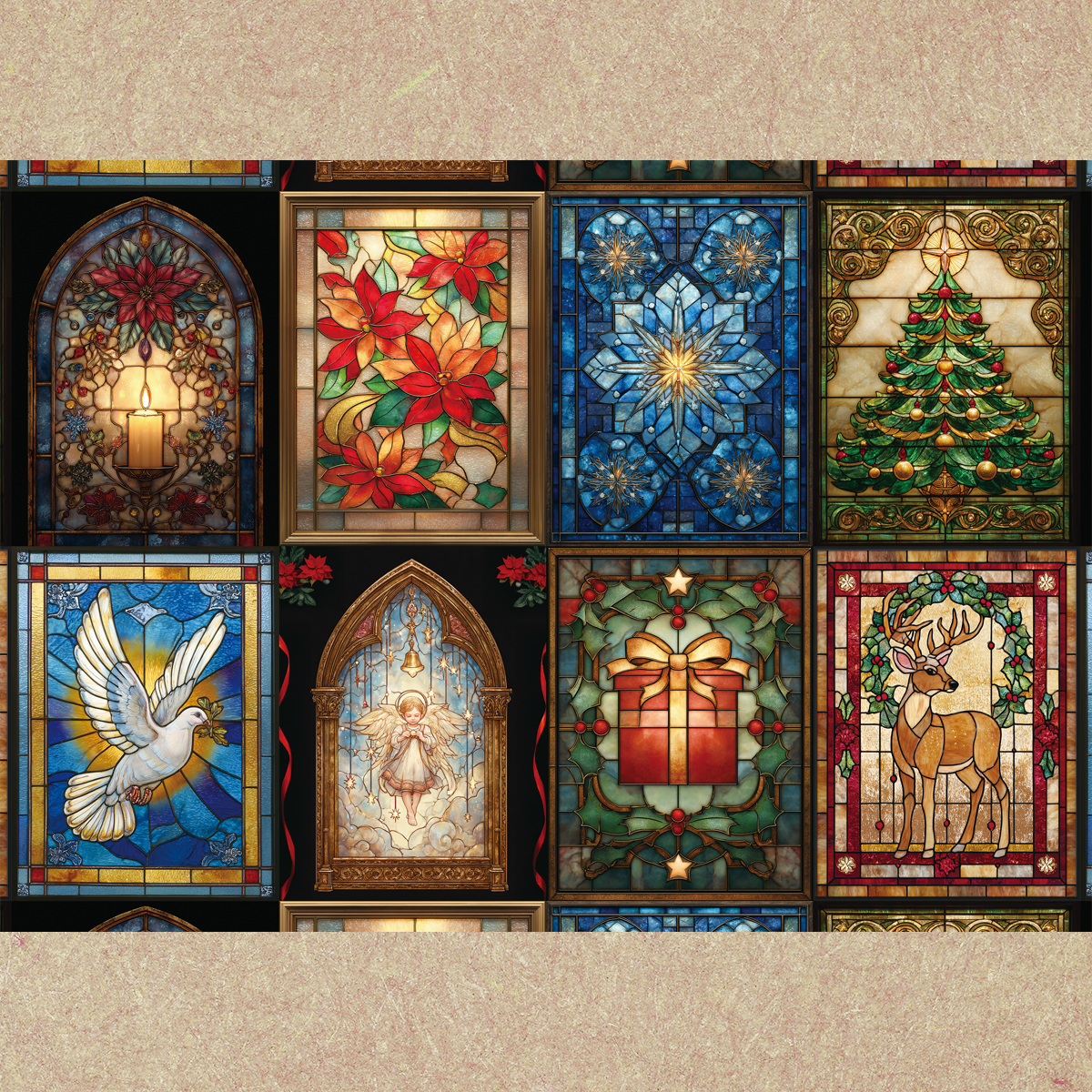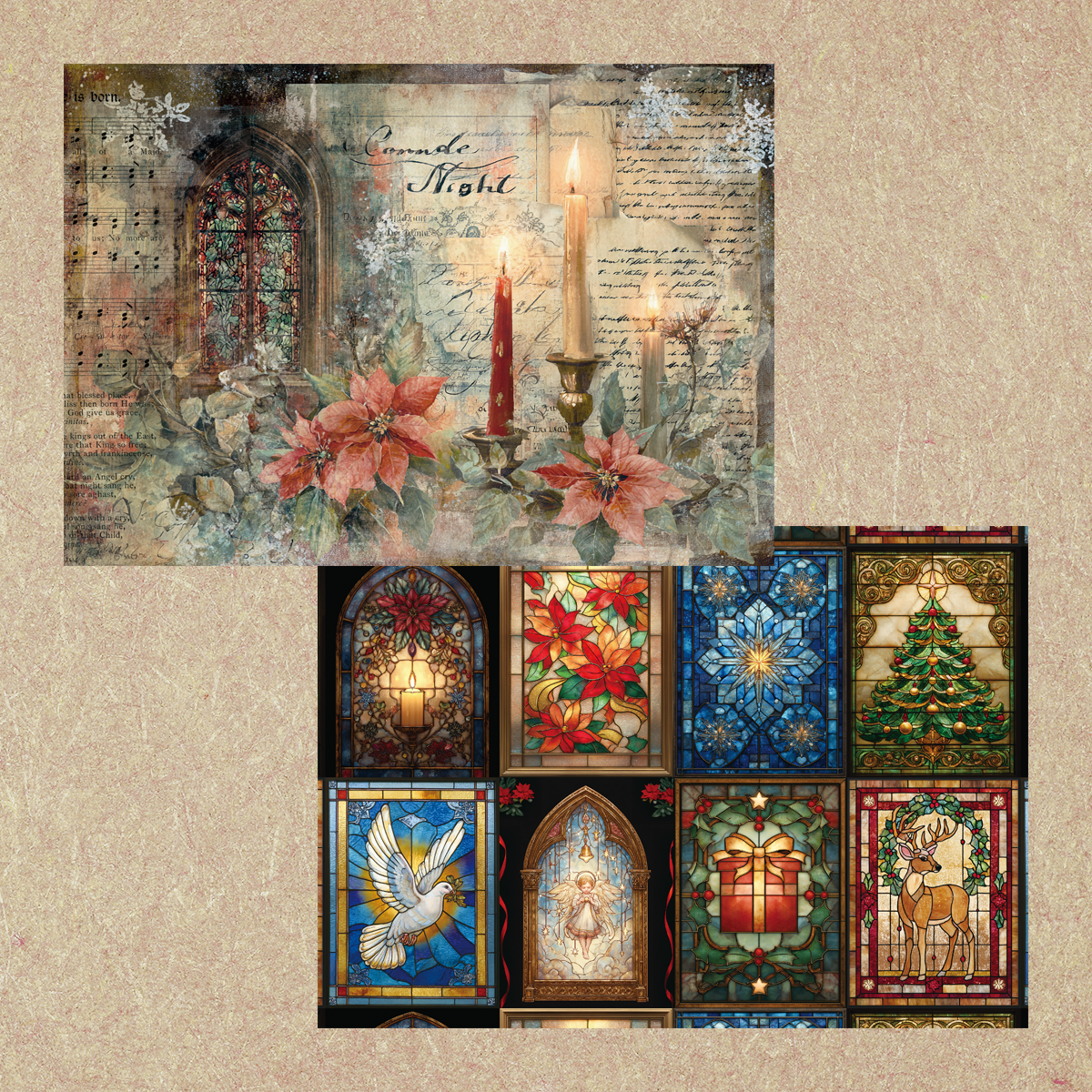 ペーパー【キャンドルナイト】 仕様 キャンドルナイトをイメージしたビンテージデザインと キャンドルで反射されたイメージのステンドグラスデザインです。 当店オリジナルの素材を使用しています。 A4両面カラー:上質紙90kg 10枚セット ※商用利用可 ※当店ではデフォルメされた素材などを使用しています。リアルさをお求めの方は見本の詳細を見て頂きご購入をお願いいたします。 ※AIでの素材作成、テキスト作成やビンテージの素材を使用しておりますので苦手な方はご遠慮ください。 在庫状態 : 売り切れ ¥400 只今お取扱い出来ません