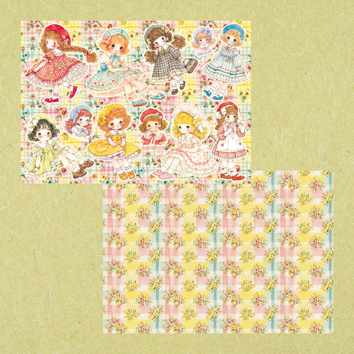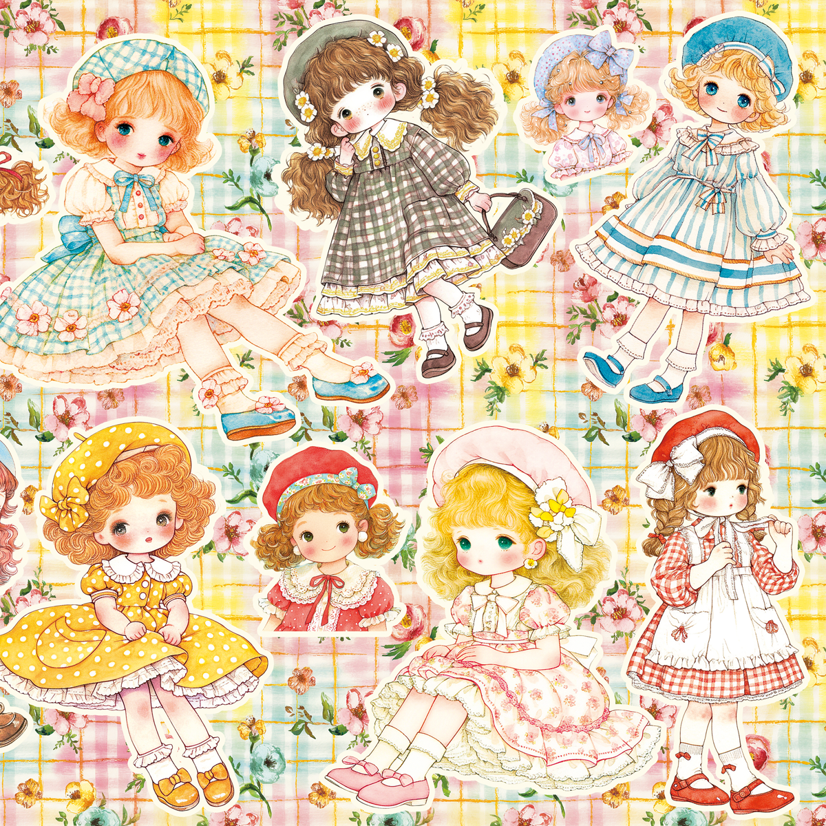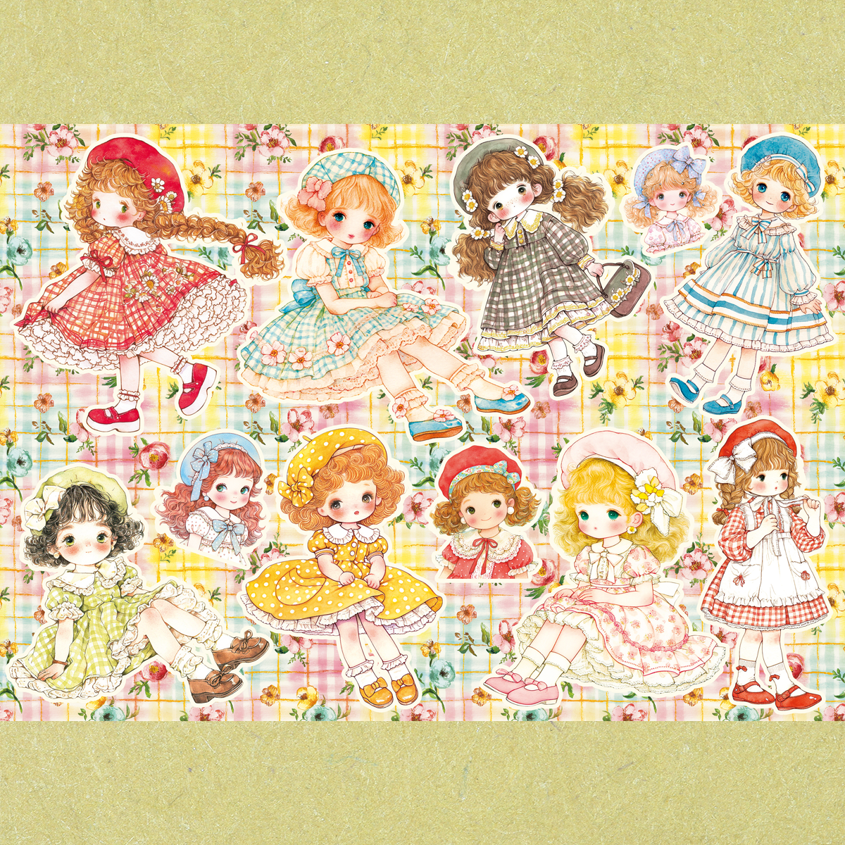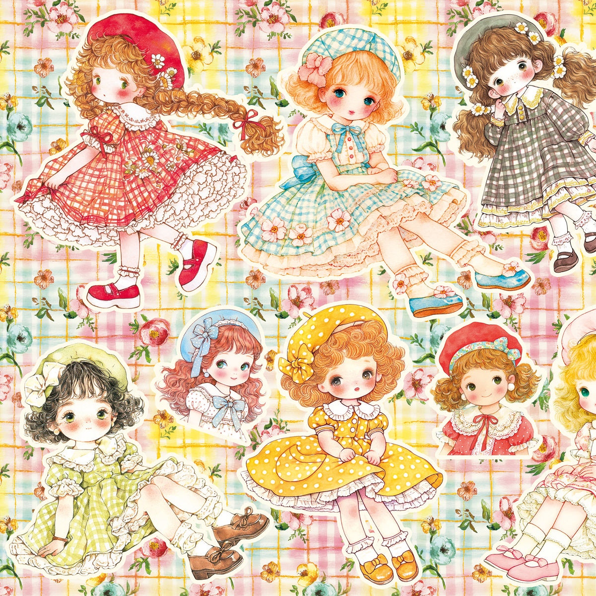 ベレー帽の女の子のコラージュシート。