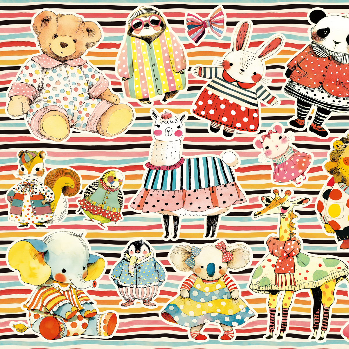 レトロポップなおしゃれな動物のコラージュシート。