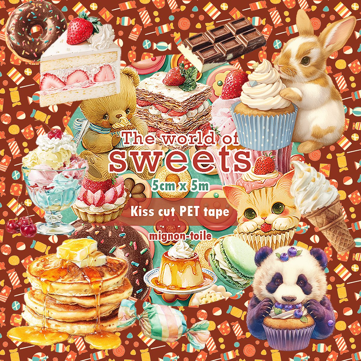カットラインあり:クリスタルインクPETテープ【5cm幅:お菓子の世界】