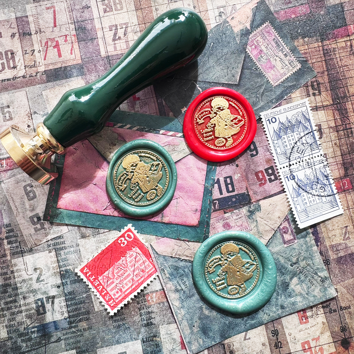 シーリングスタンプ【2.5cm郵便子供】 仕様 当店オリジナルのデザインのシーリングスタンプです。 持ち手がついていますのでそのまま使用可能です。 ヘッド 直径2.5sm合金 持ち手 高さ約7cm木製 中国産 海外製ですので多少の傷がございます。 予めご了承ください。 ⚠️商用利用不可 コラージュなどの一部に使用の場合は可 在庫状態 : 売り切れ ¥1,280 只今お取扱い出来ません