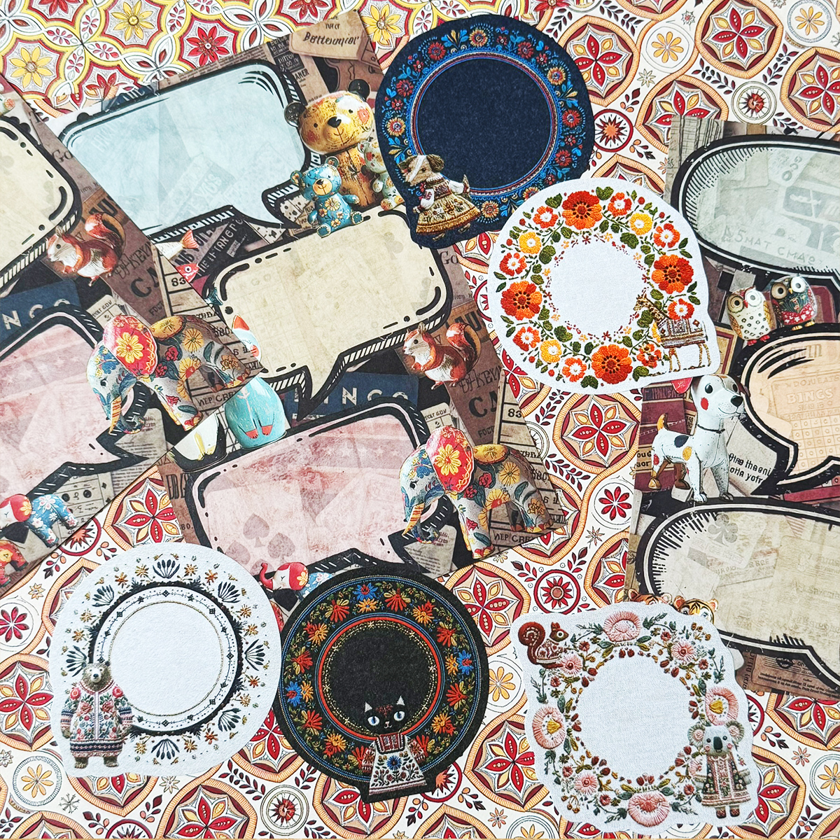 ダイカットロールメモシール【カロチャ刺繍動物】